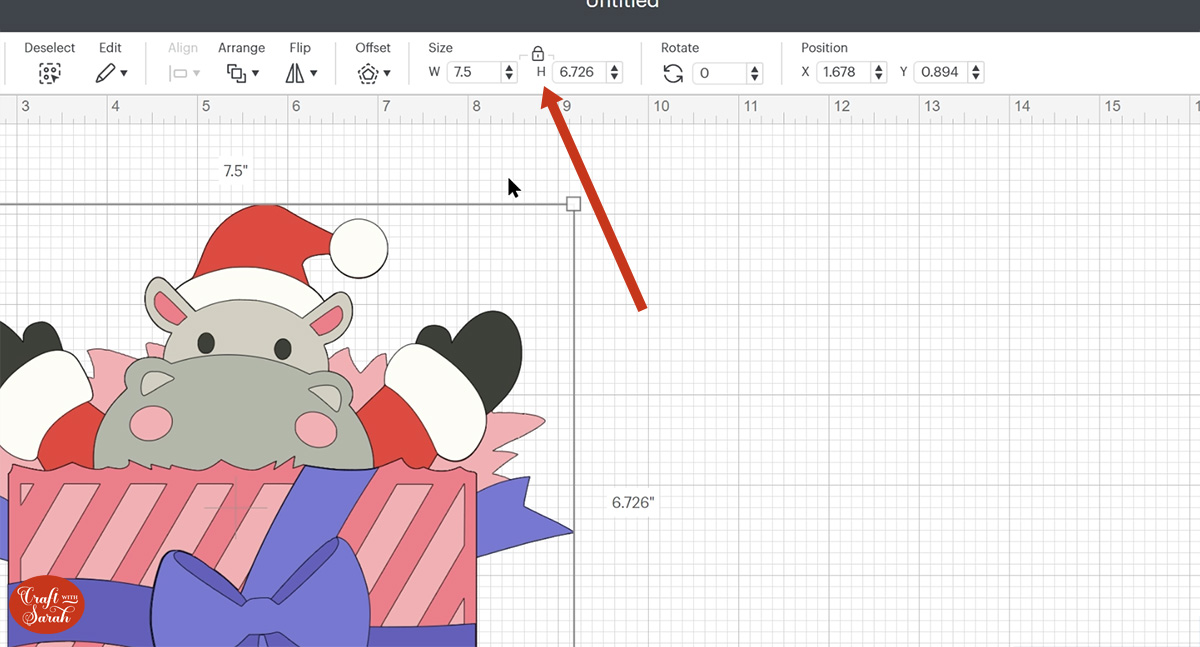 To resize the hippo, click the design on your canvas and use the width/height boxes near the top of the screen to make it the size that you want to cut it.