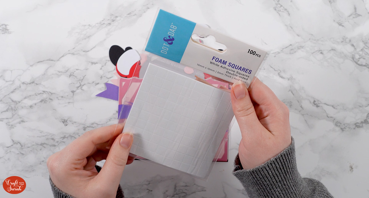 The foam pads that I use are from “Dot & Dab”, but any foam squares will work. If yours are big then you may need to cut them smaller with scissors to fit inside the edges of the layers.