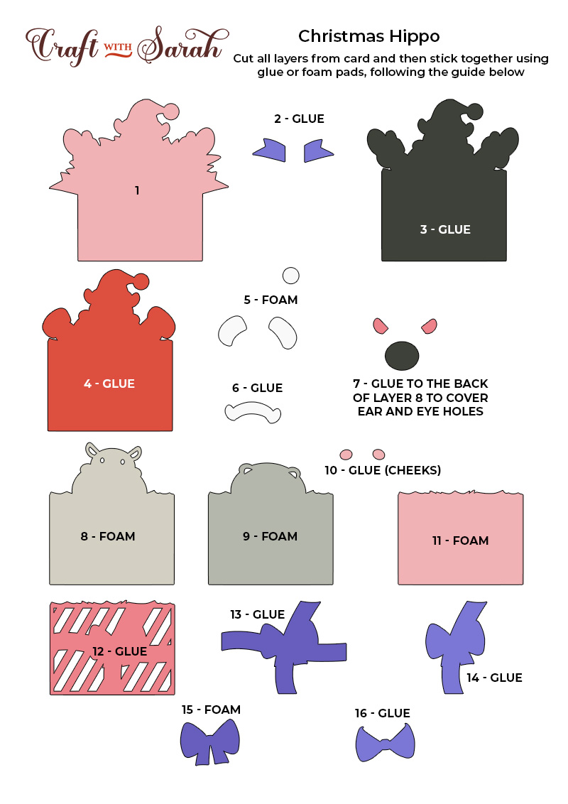 After sticking all the pieces of card together, you’ll have an adorable little Christmas hippo all ready to be framed.