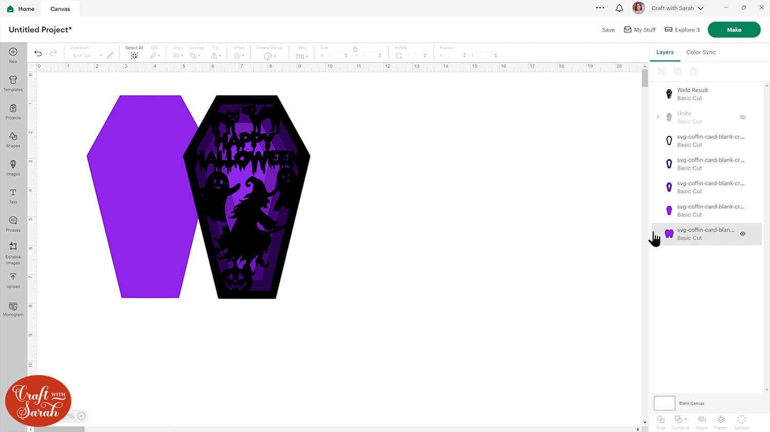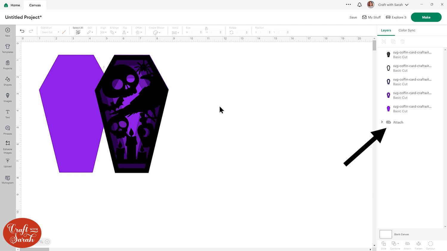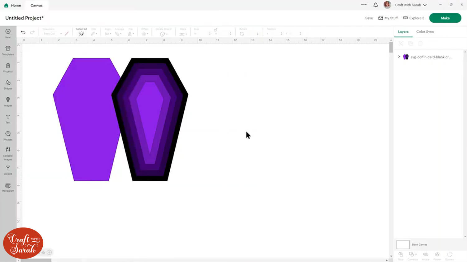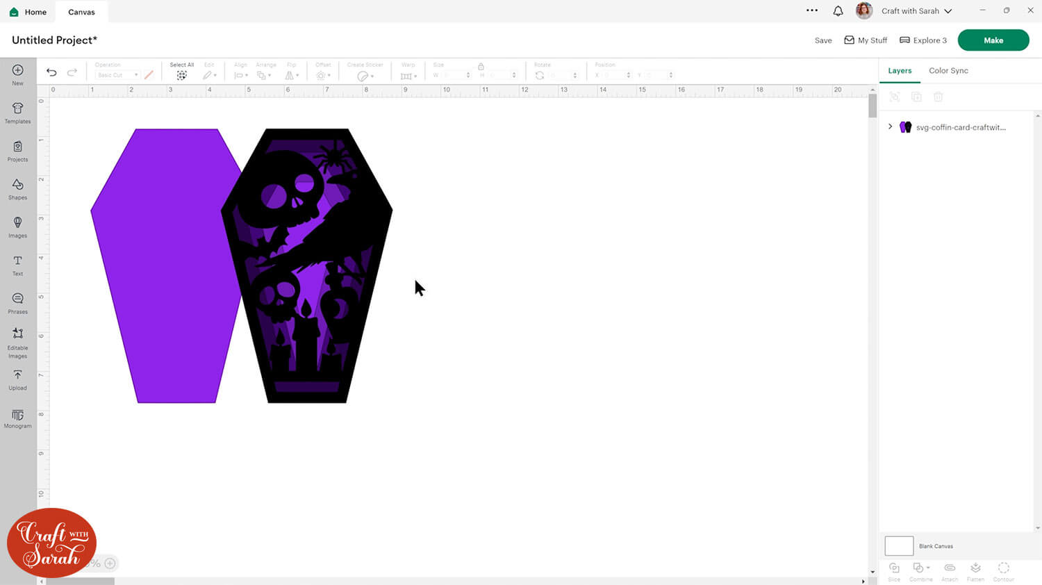 I am using Cricut Access images for my coffin card, but you can use any SVGs that you have uploaded to Design Space.