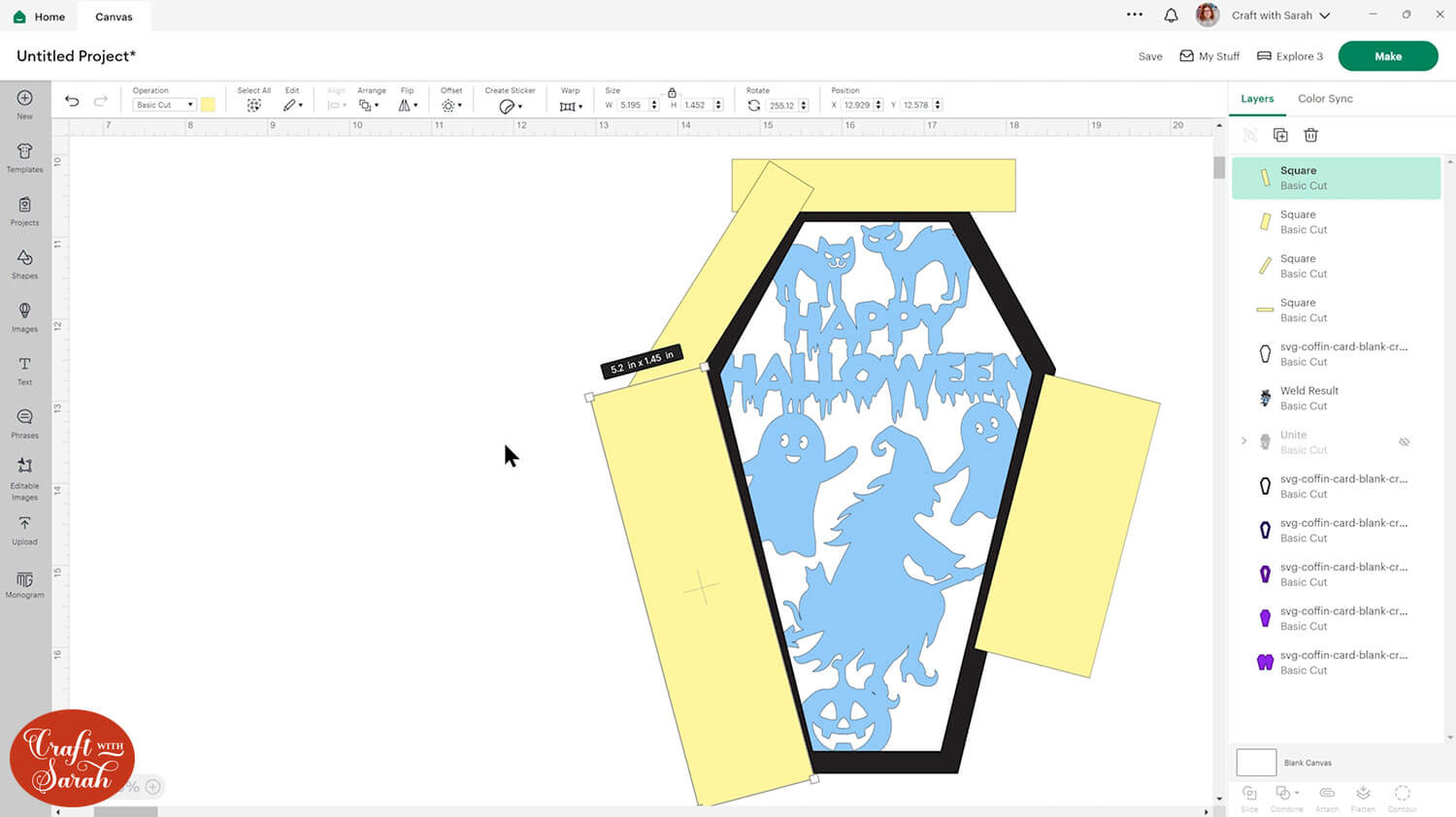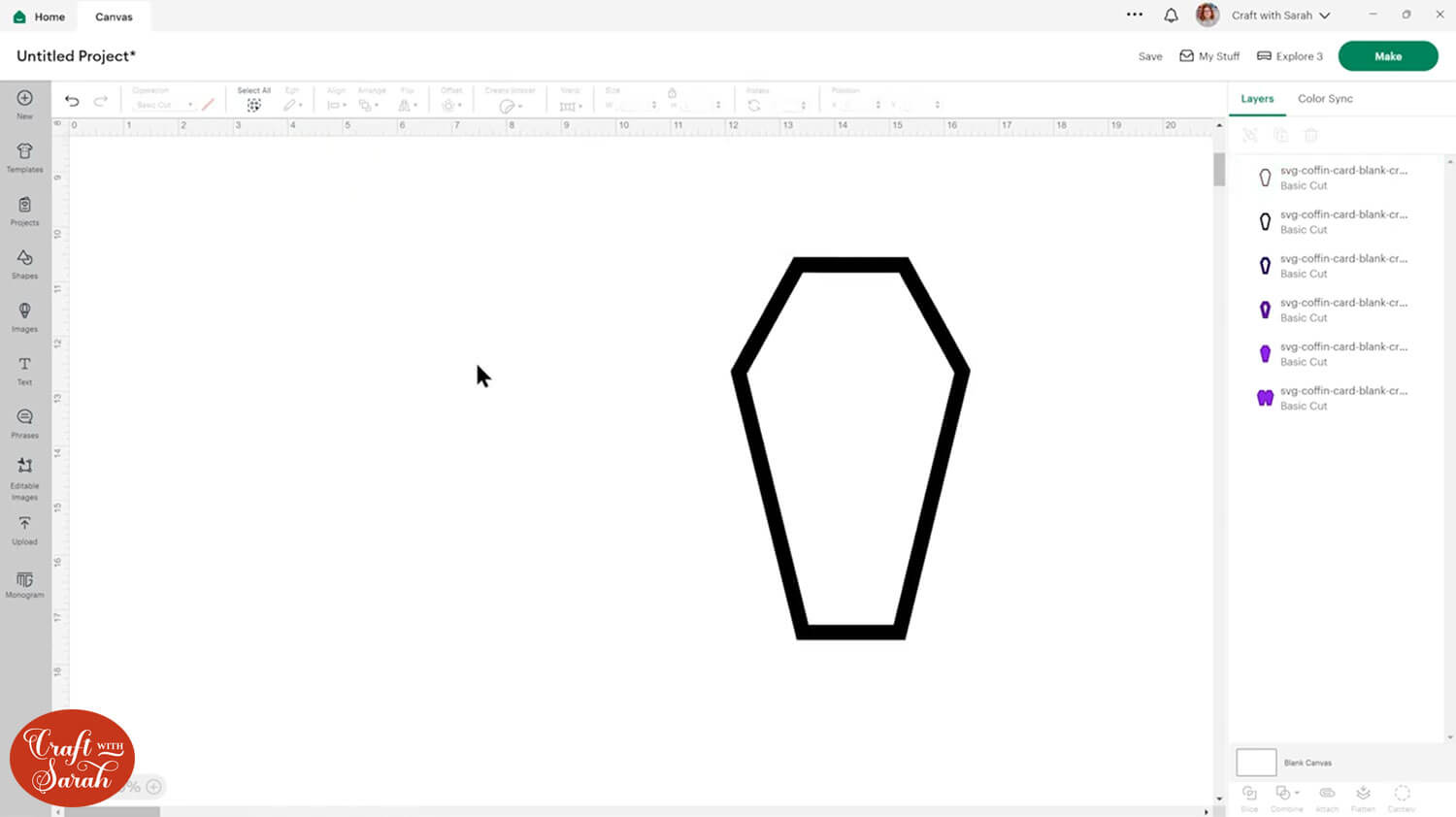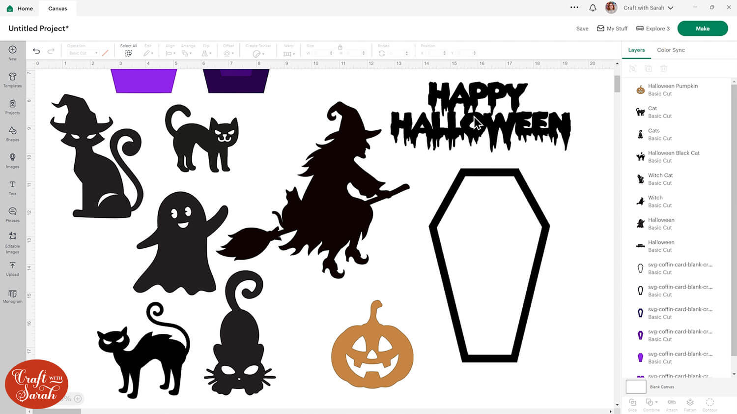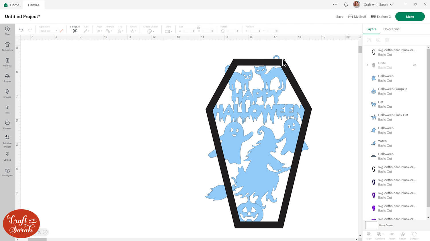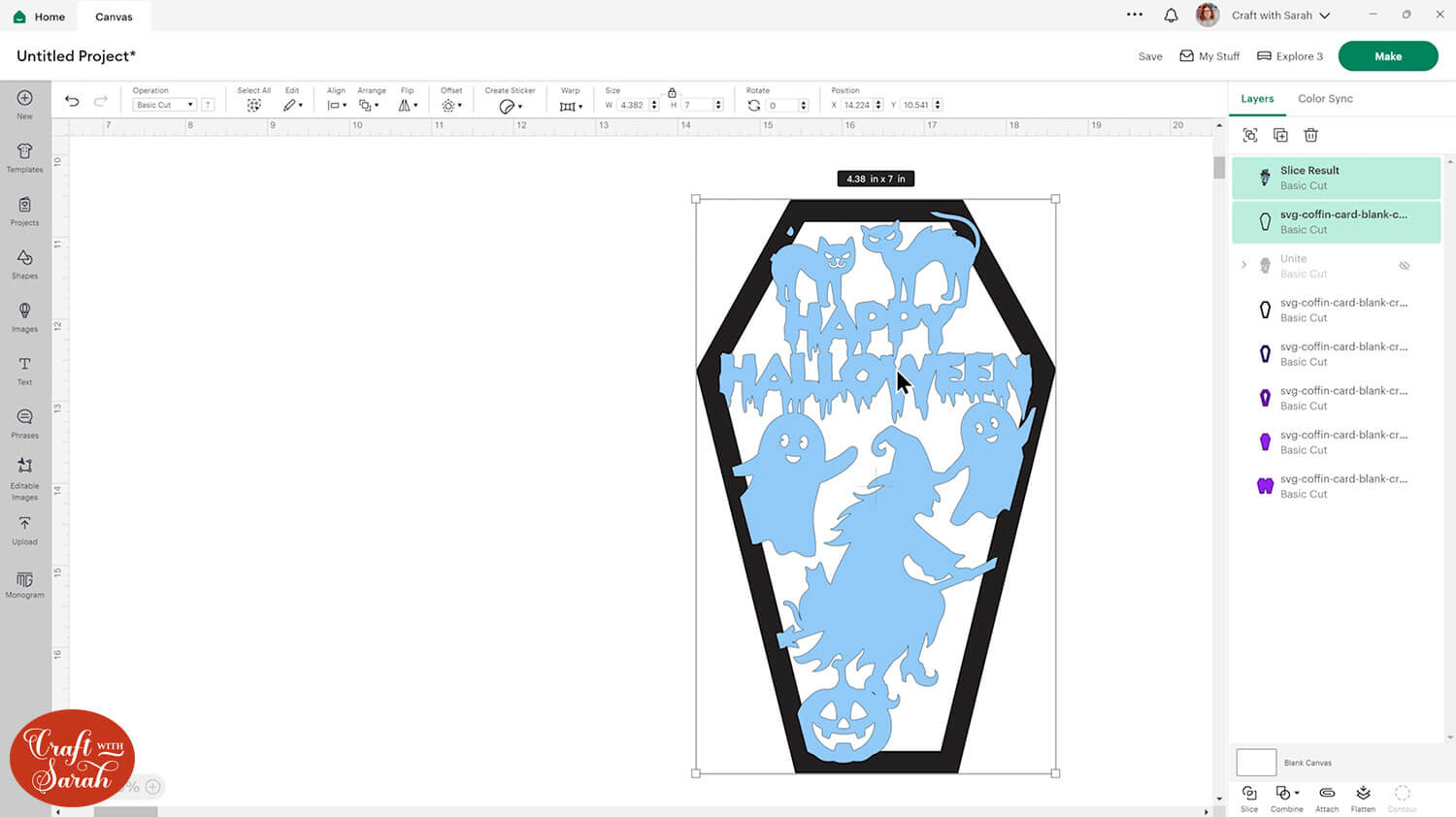 I am using Cricut Access images for my coffin card, but you can use any SVGs that you have uploaded to Design Space.