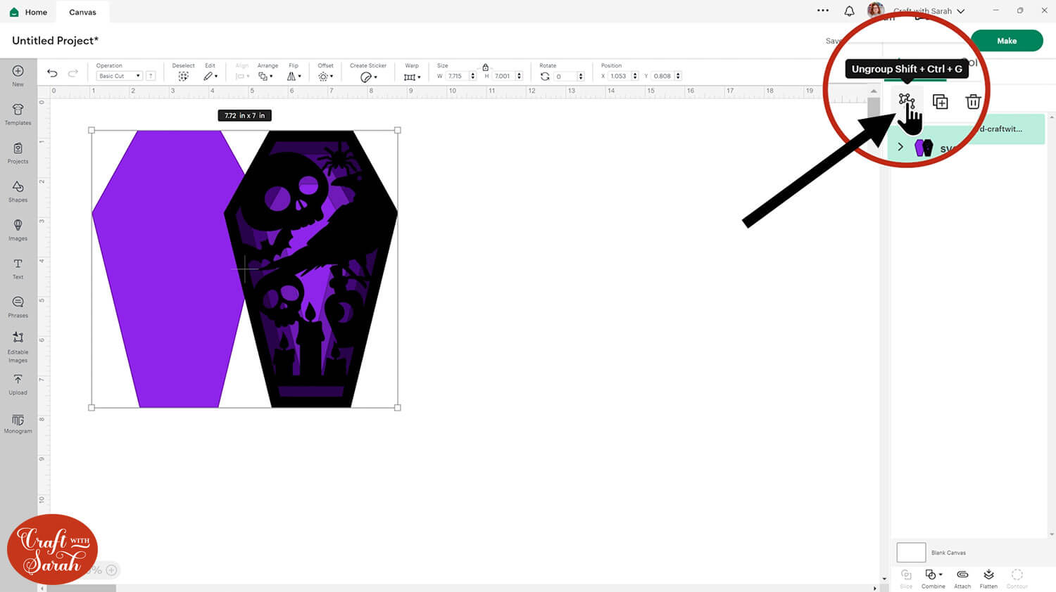 Ungroup the layers and drag the coffin outline (black layer) down on the project so it’s underneath everything else. This will give us more room to work with on the screen.