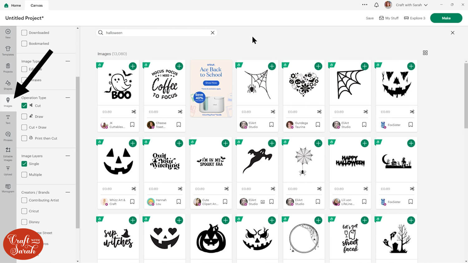 If you are using Cricut Access, it can help to narrow down the suitable images by choosing “Cut” in the “Operation Type” filter and “Single” in the “Image Layers” filter.