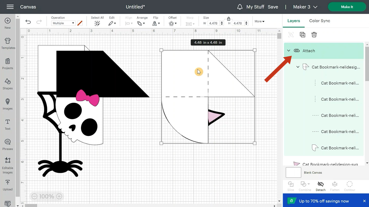 Attach is what tells the Cricut to do the score lines on top of the main bookmark pieces.