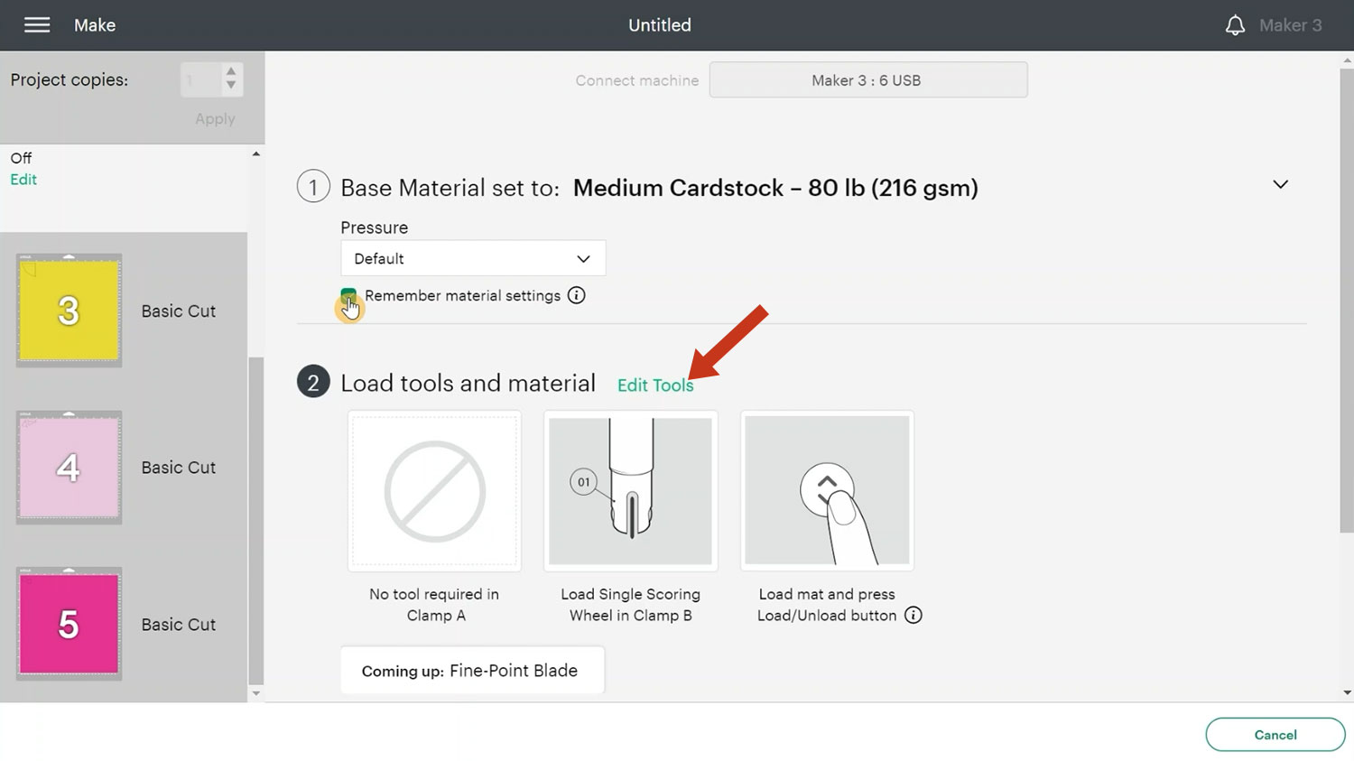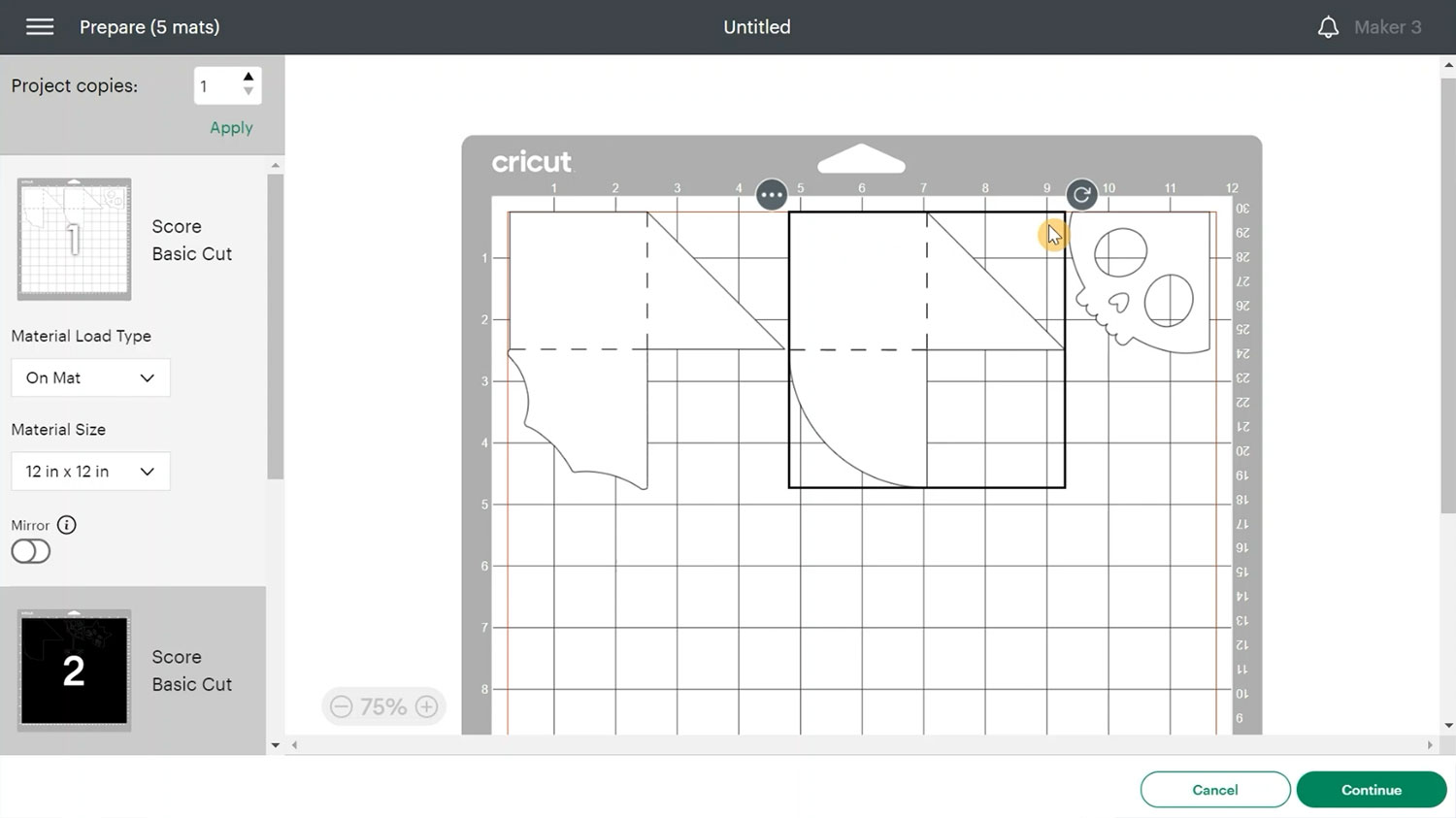 You may want to arrange the cuts on screen to save cardstock by clicking-and-dragging the pieces.