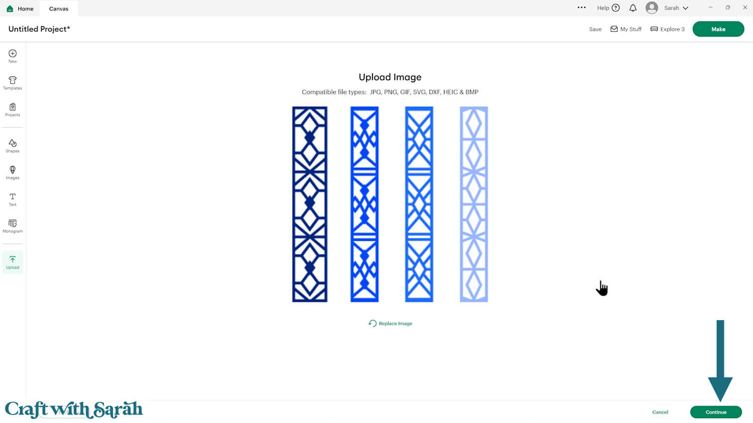 If you are using Cricut Design Space, start a new project and then click the “Upload” button on the left of the screen.