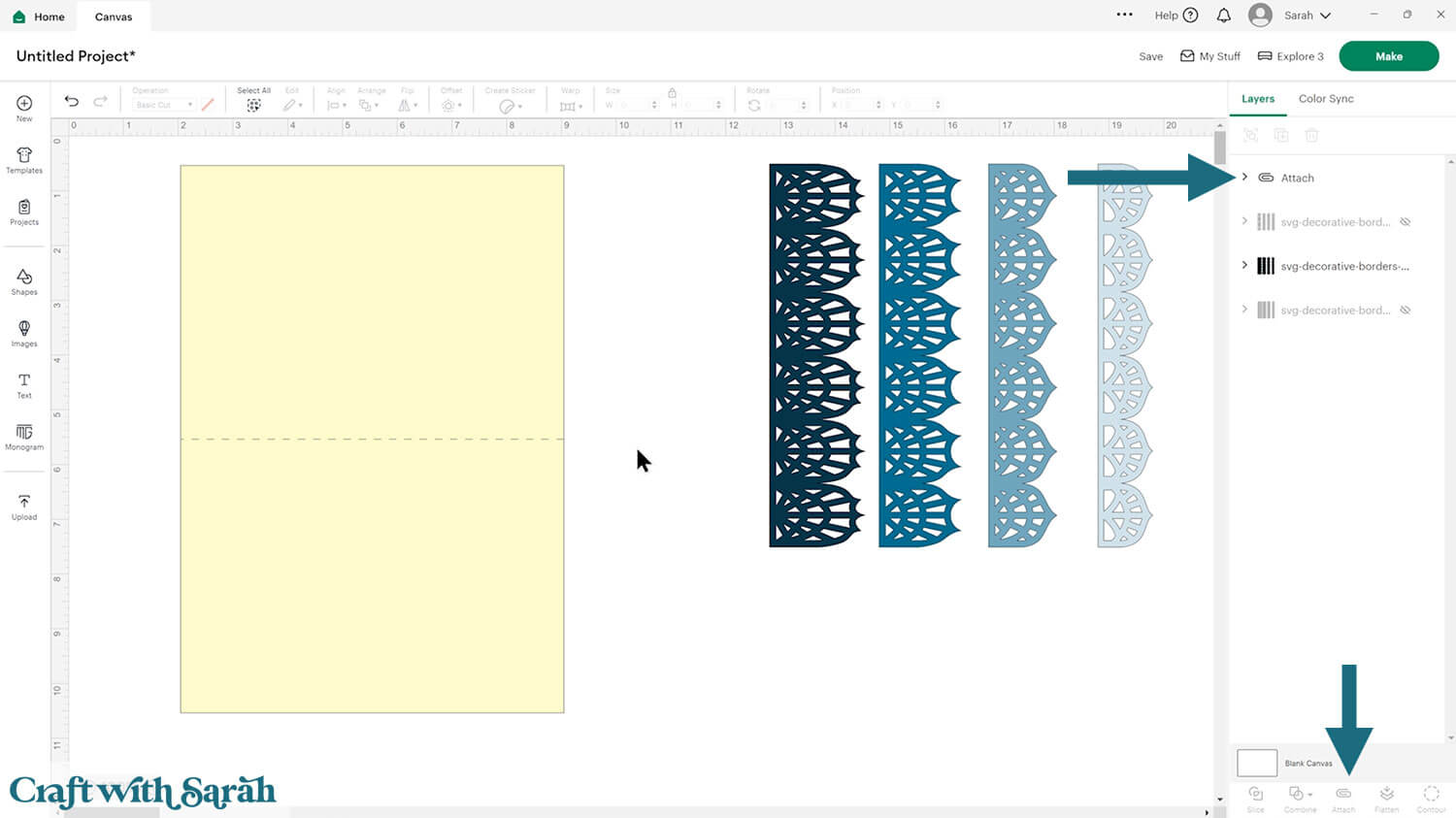 Select the draw layer and the shape and “Attach” them together so that the Cricut understands that you want to do the drawing on top of that shape.
