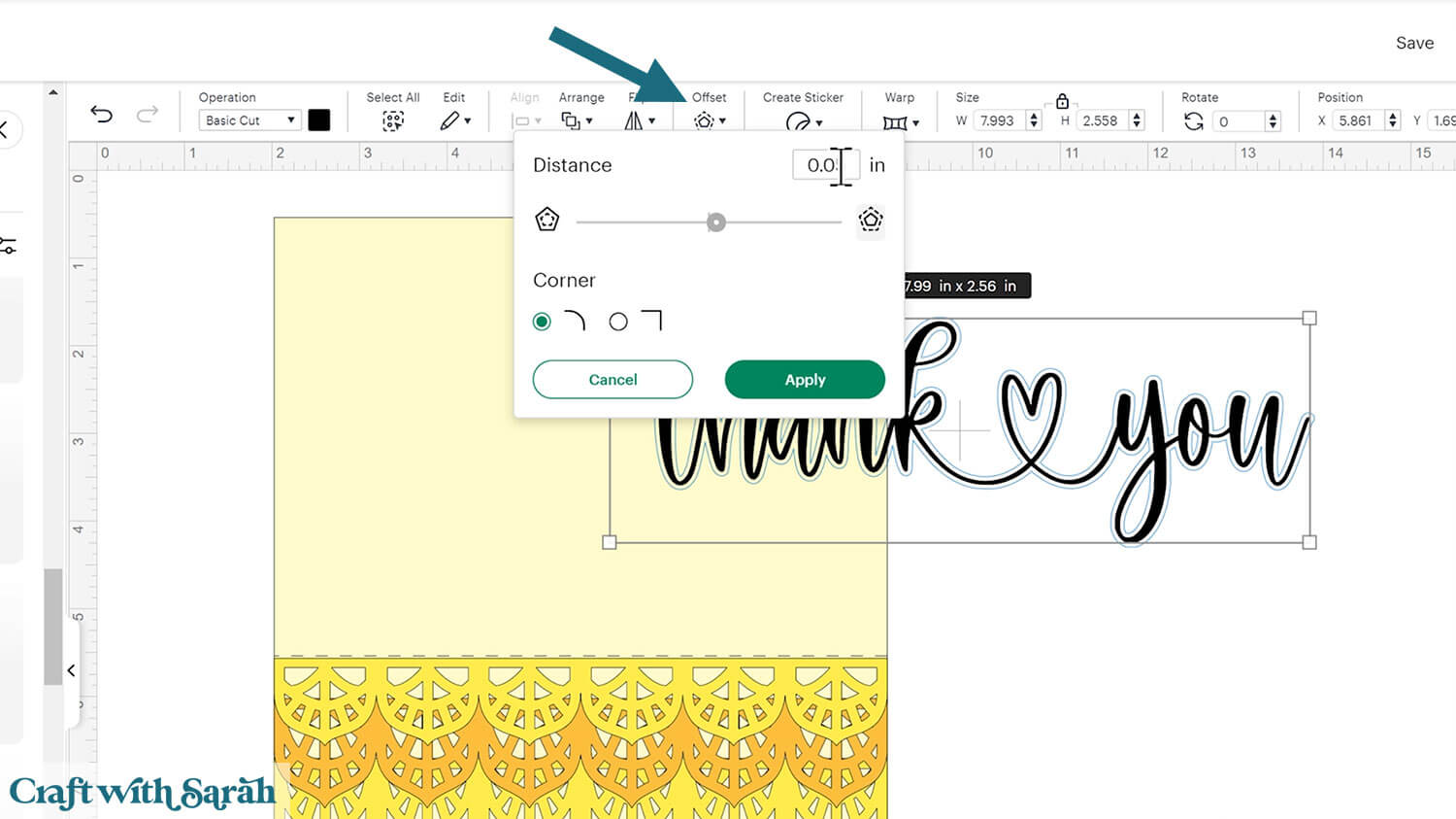If your chosen image or wording is very thin, add an “Offset” to create a thicker version that will be easier for the Cricut to cut.
