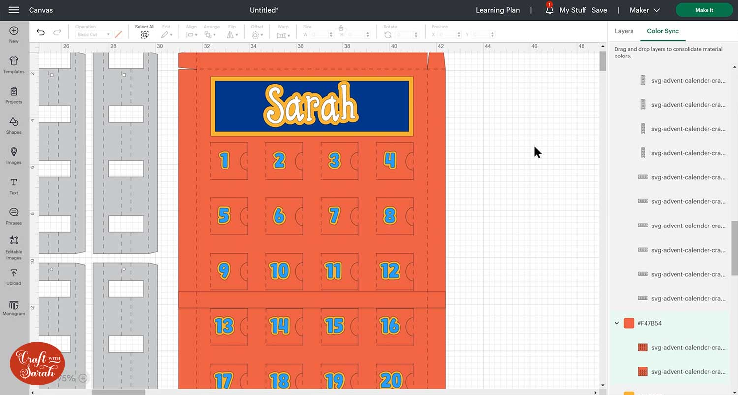 Important: For Cricut Design Space, upload the file called svg-advent-calender-craftwithsarah.svg