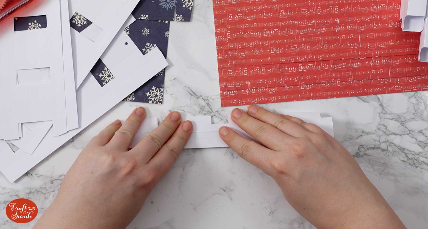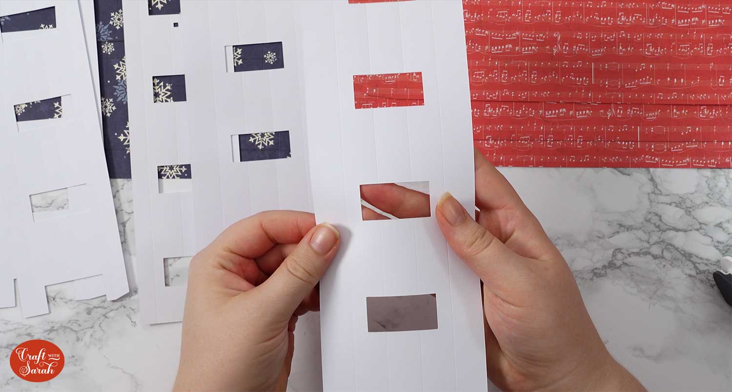 The remaining pieces without cutouts will slot into the gaps. You won’t need any extra glue or tape for these ones.