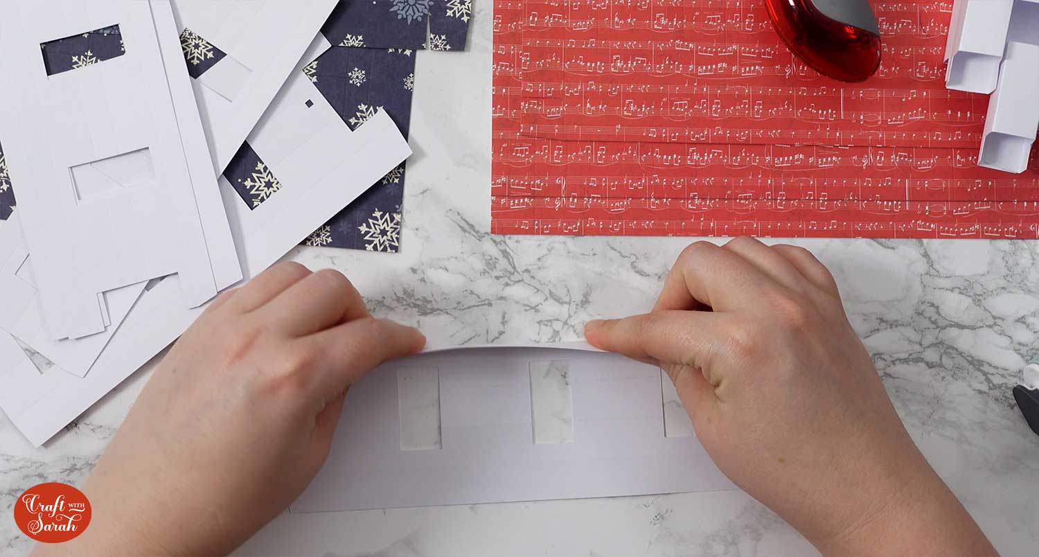 Fold in the tab with the slanted edges and apply the double sided tape. I needed to use two rows of double sided tape as the tab was thicker than my tape.