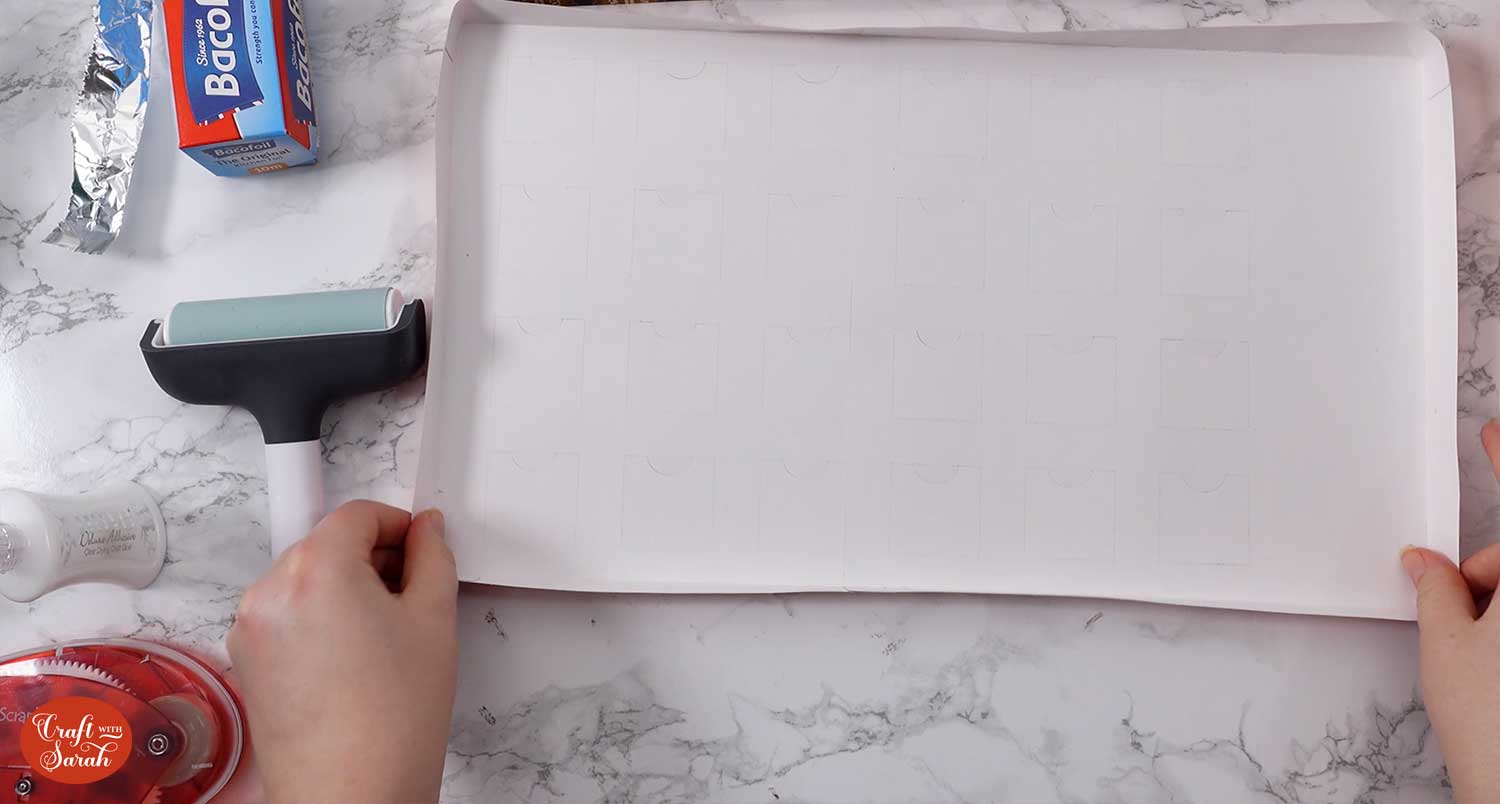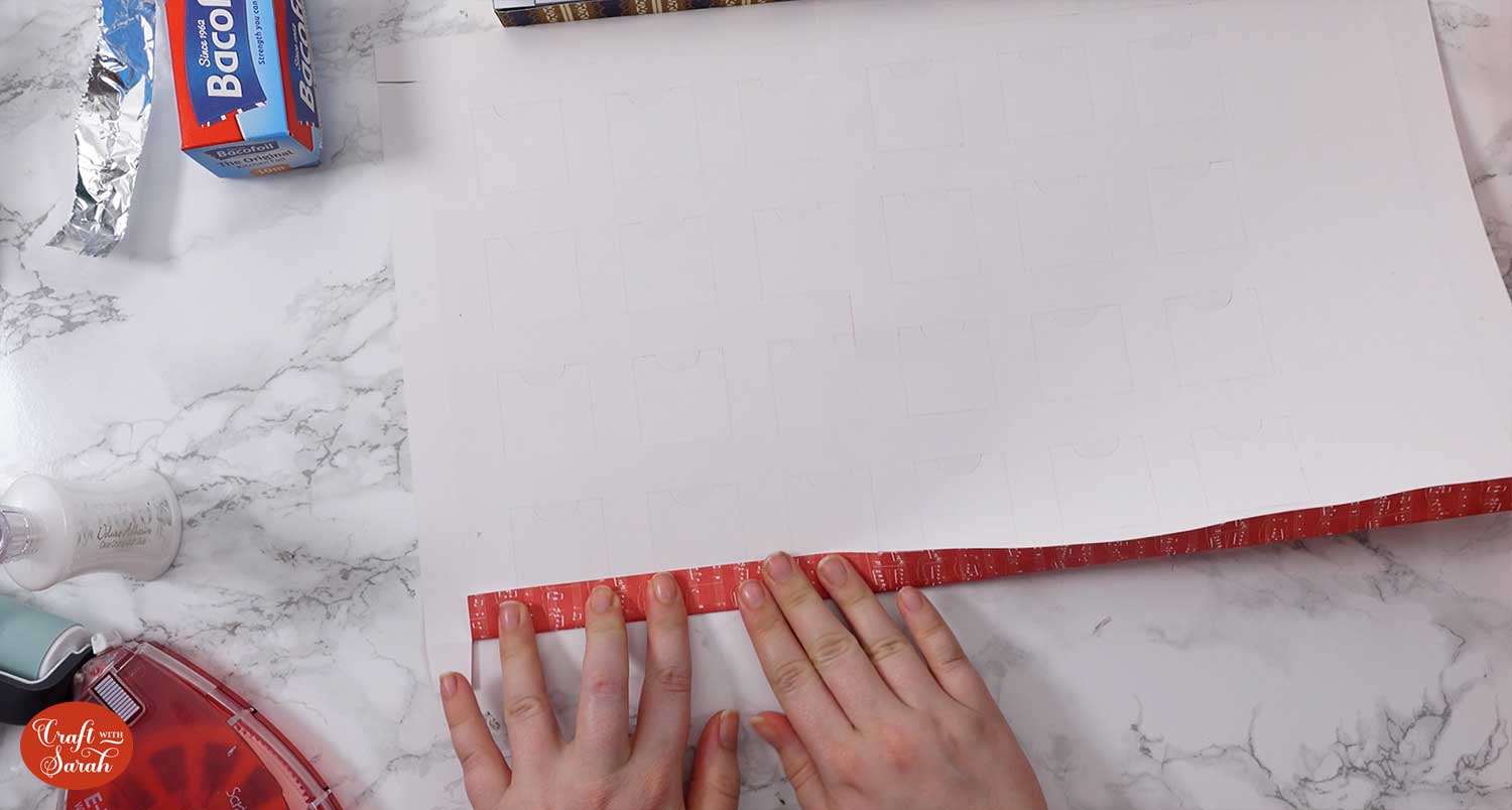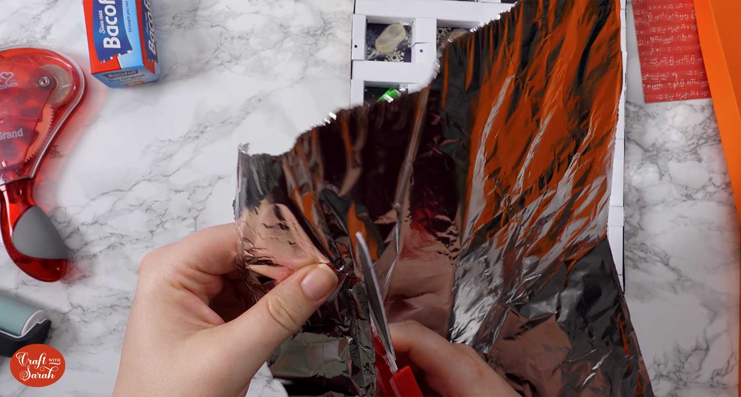 To seal the sweets, get some tin foil and cut it to the size of your advent calendar with a pair of scissors.