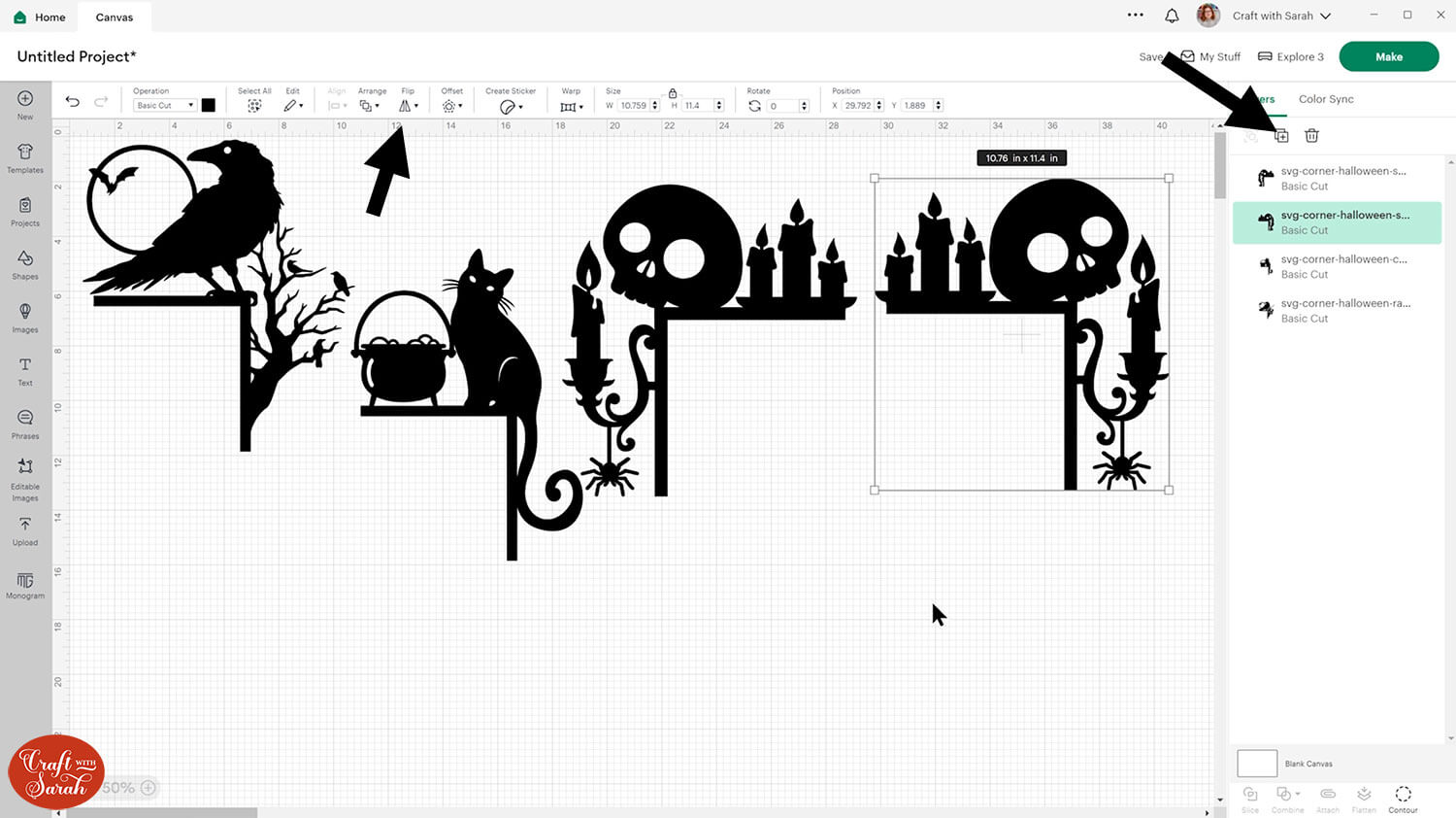 Each door corner is saved as a separate SVG file, so you’ll need to repeat the upload if you want to cut all three designs.