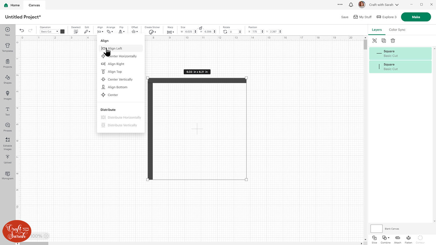 Select both rectangles and press “Align > Align Left” to line them up perfectly.