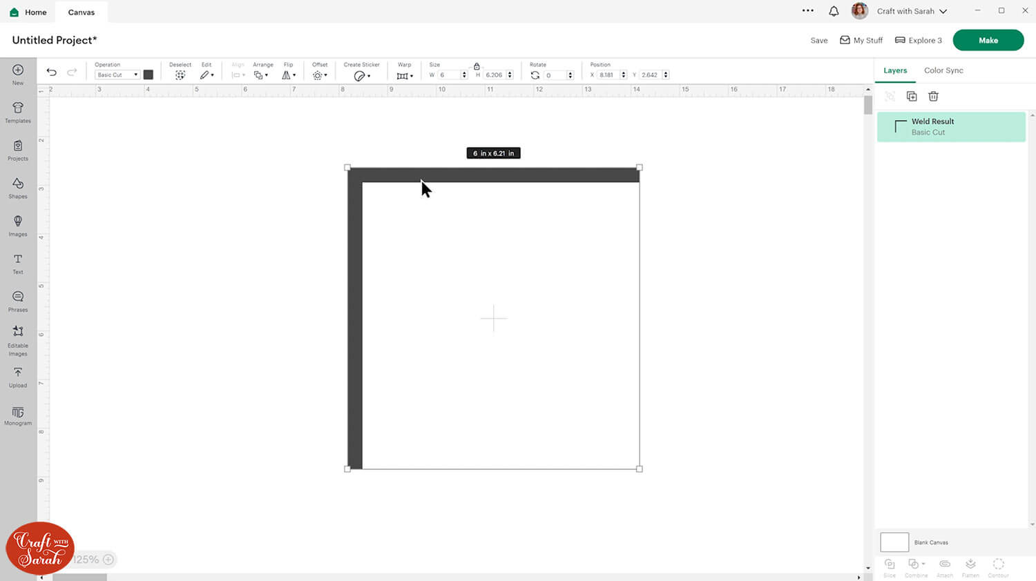 Press “Combine > Weld” at the bottom of the layers panel to join the two rectangles into one single layer.
