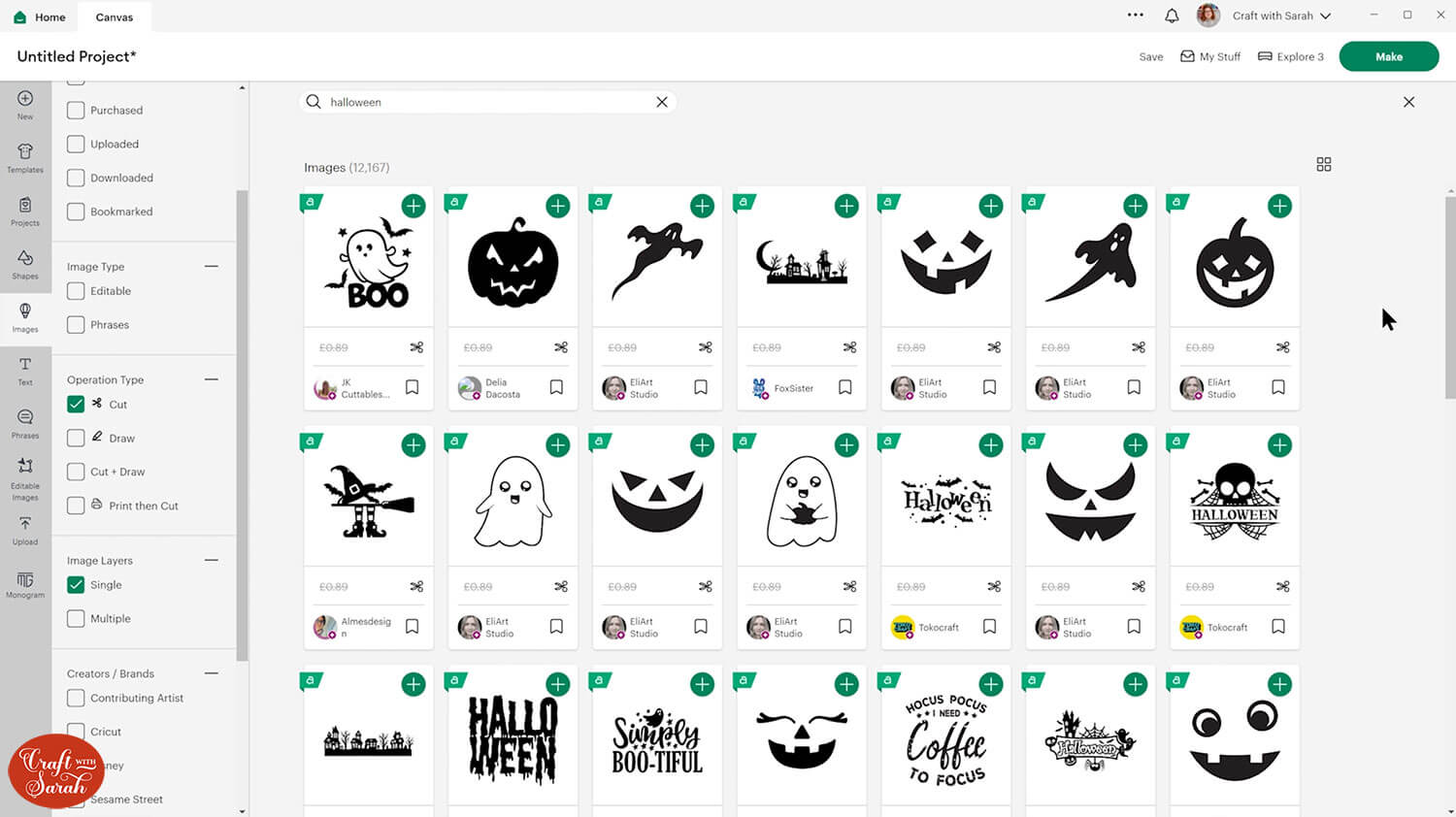 If you are using Cricut Access, it can help to narrow down the suitable images by choosing “Cut” in the “Operation Type” filter and “Single” in the “Image Layers” filter.