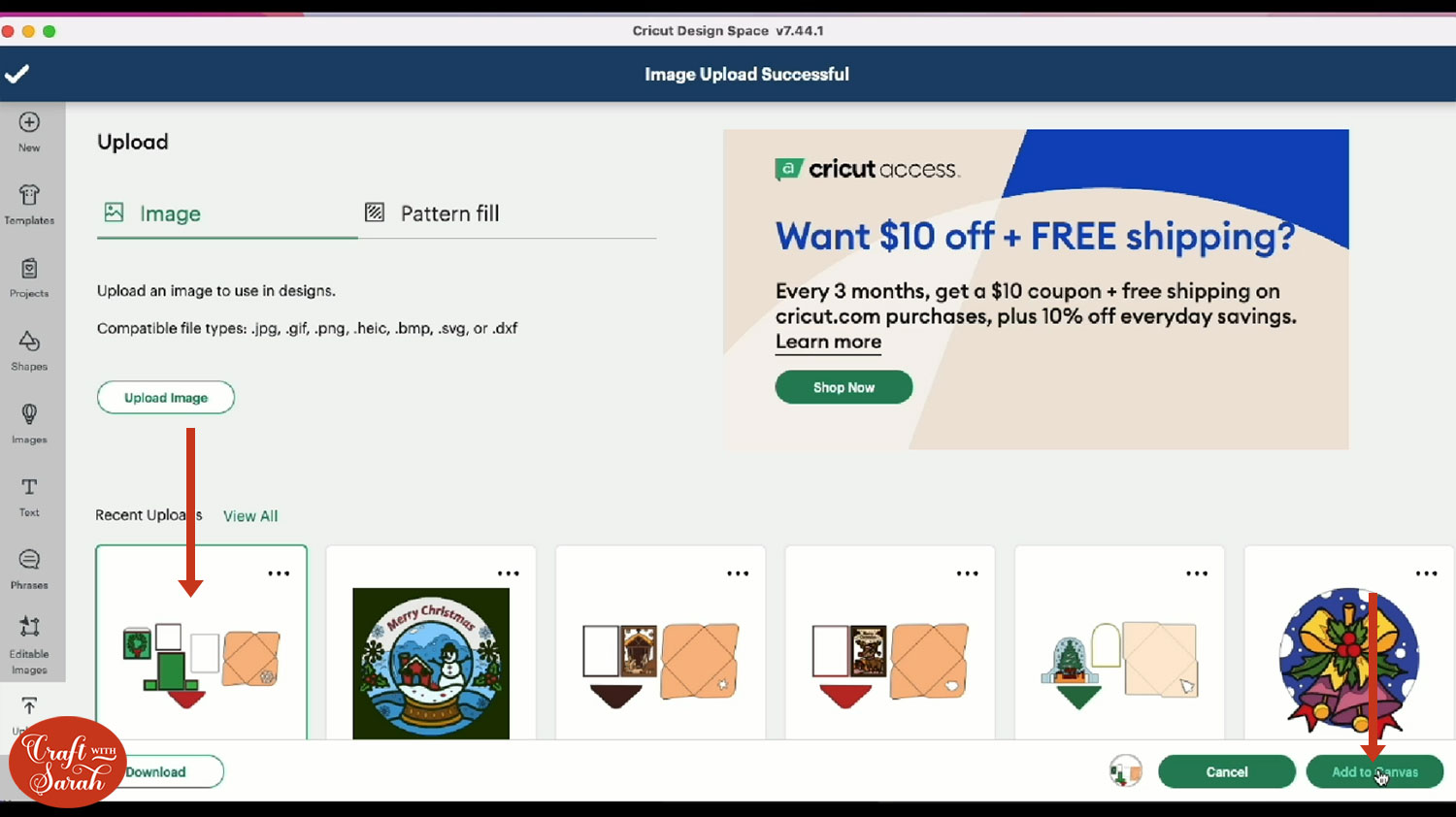 After uploading, the design will show in your “Recently Uploaded Images”.