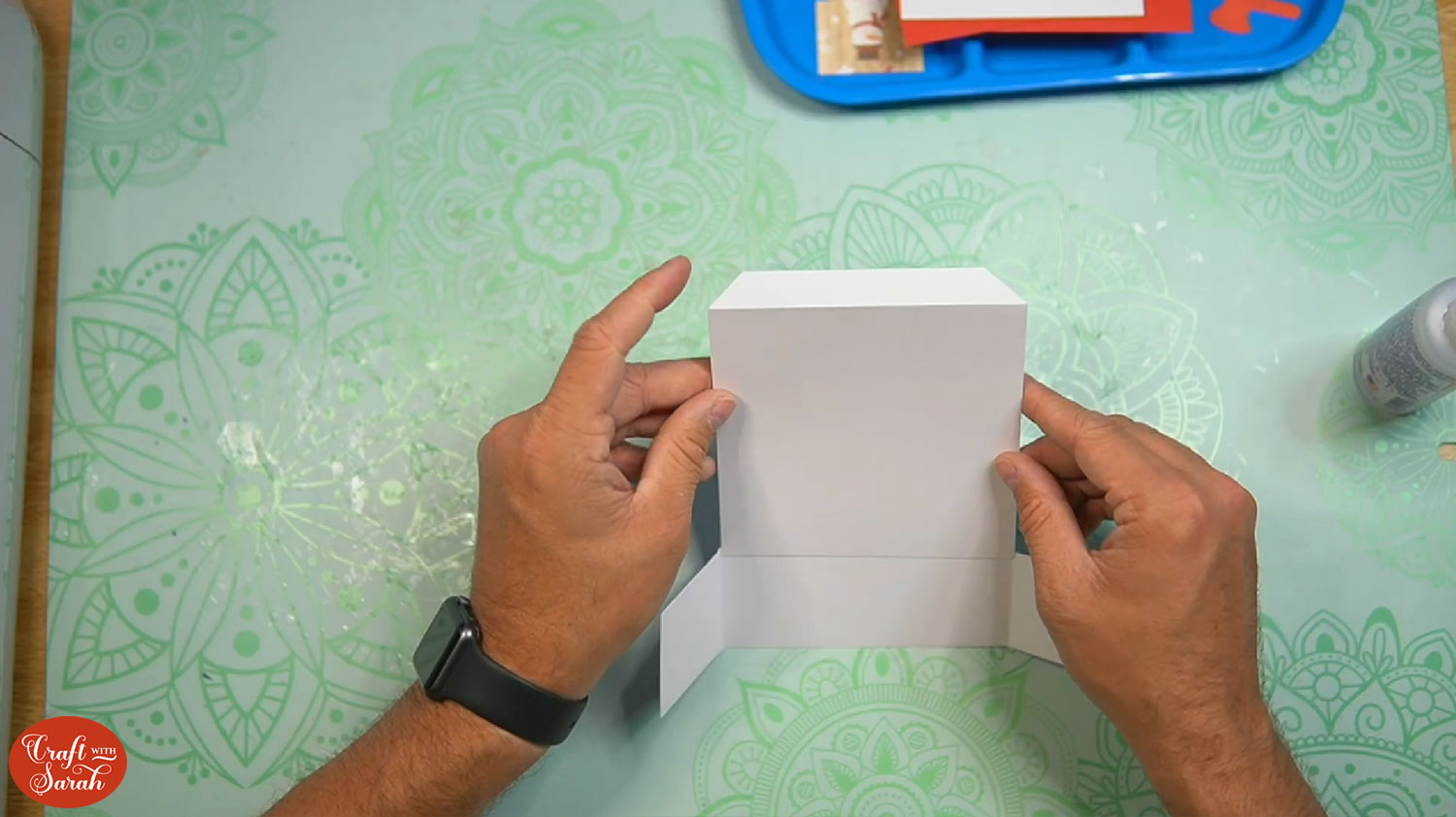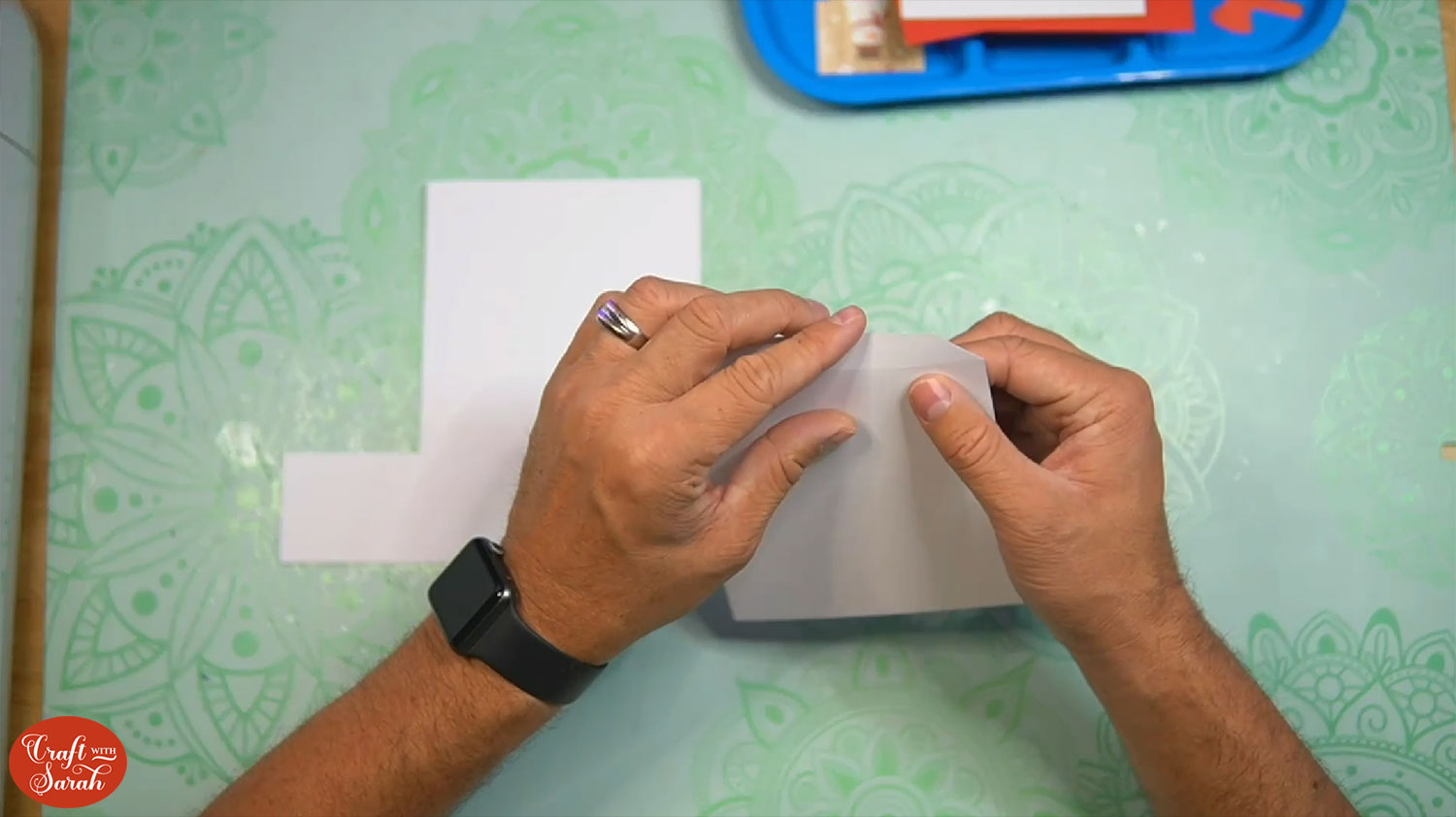 Next, fold the two tabs on the main piece inwards to make the doors. Burnish using your scraper or brayer tool.