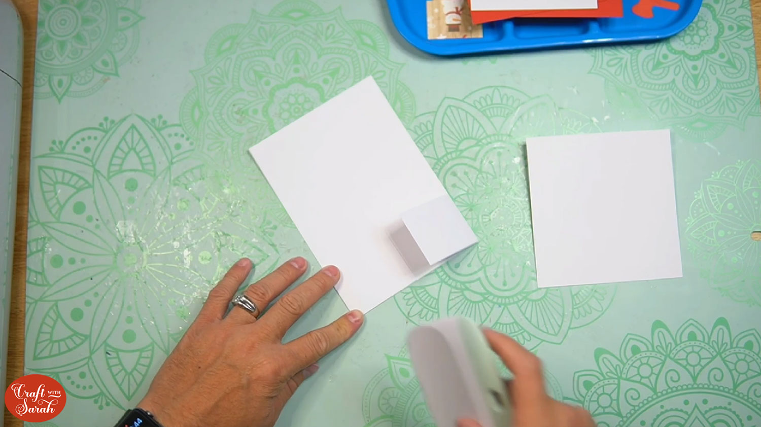 Fold along the score line of the tab piece to make a mountain fold. Burnish using your scraper or brayer tool.