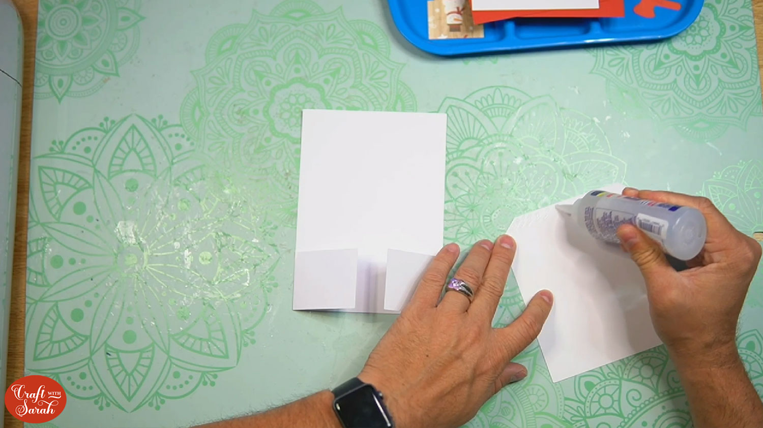 Flip the card base over and glue the extra white piece onto the back of the card to cover up the tab from the beginning.