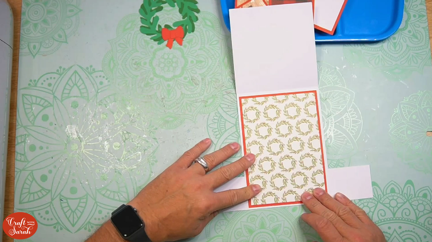 They are divided into three different sections. The inside section which will be cut from one piece of patterned paper. The two doors at the bottom from one piece of patterned paper and the section with the wreath will be another patterned paper.