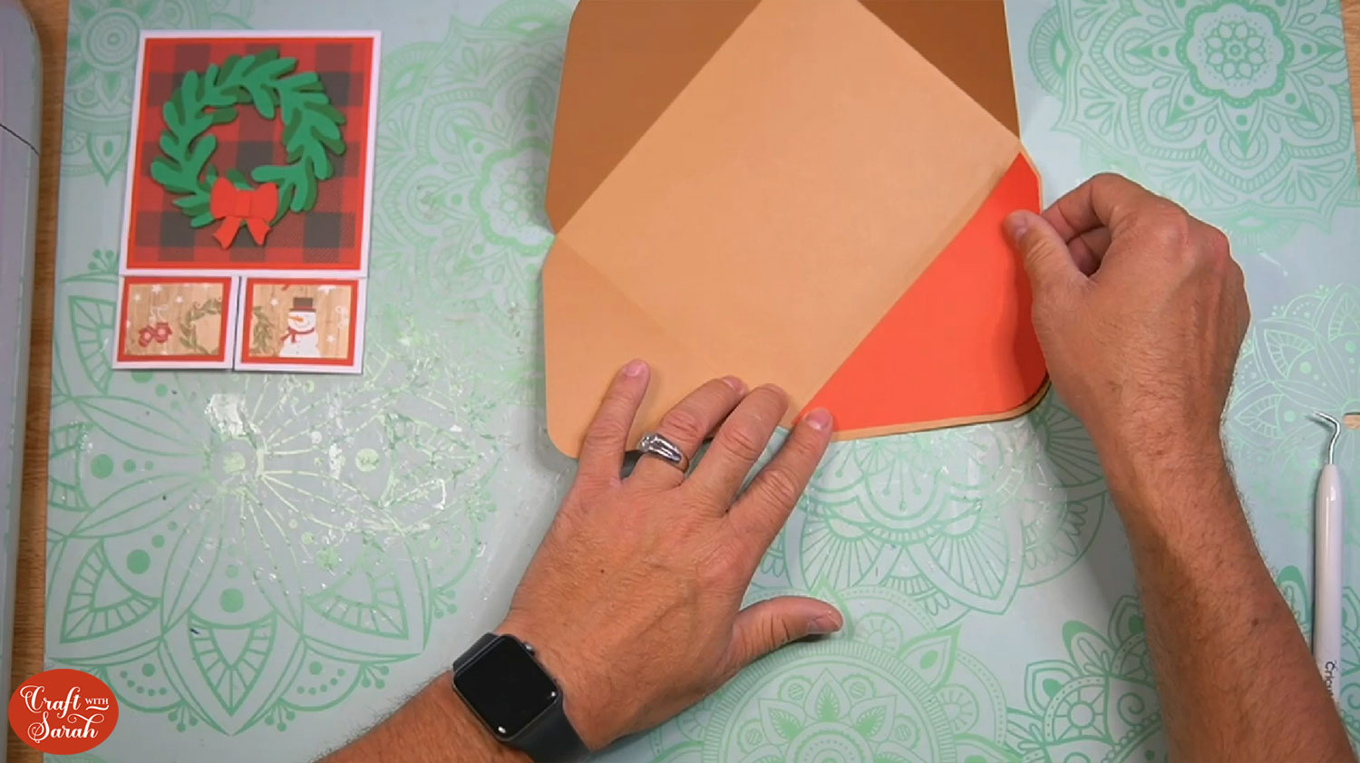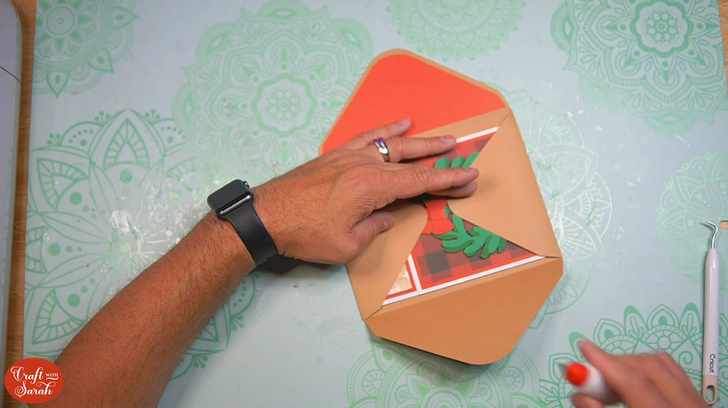 Add the wreath to the front panel using foam squares to add some dimension to the front cover panel.