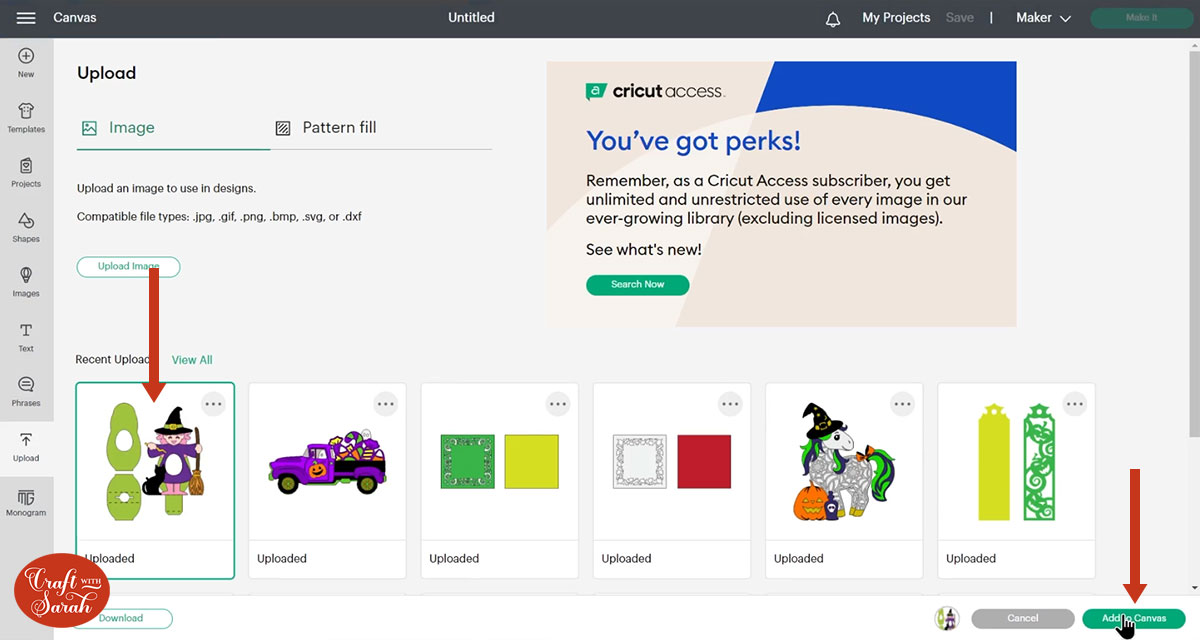 After uploading, the design will show in your “Recently Uploaded Images”.