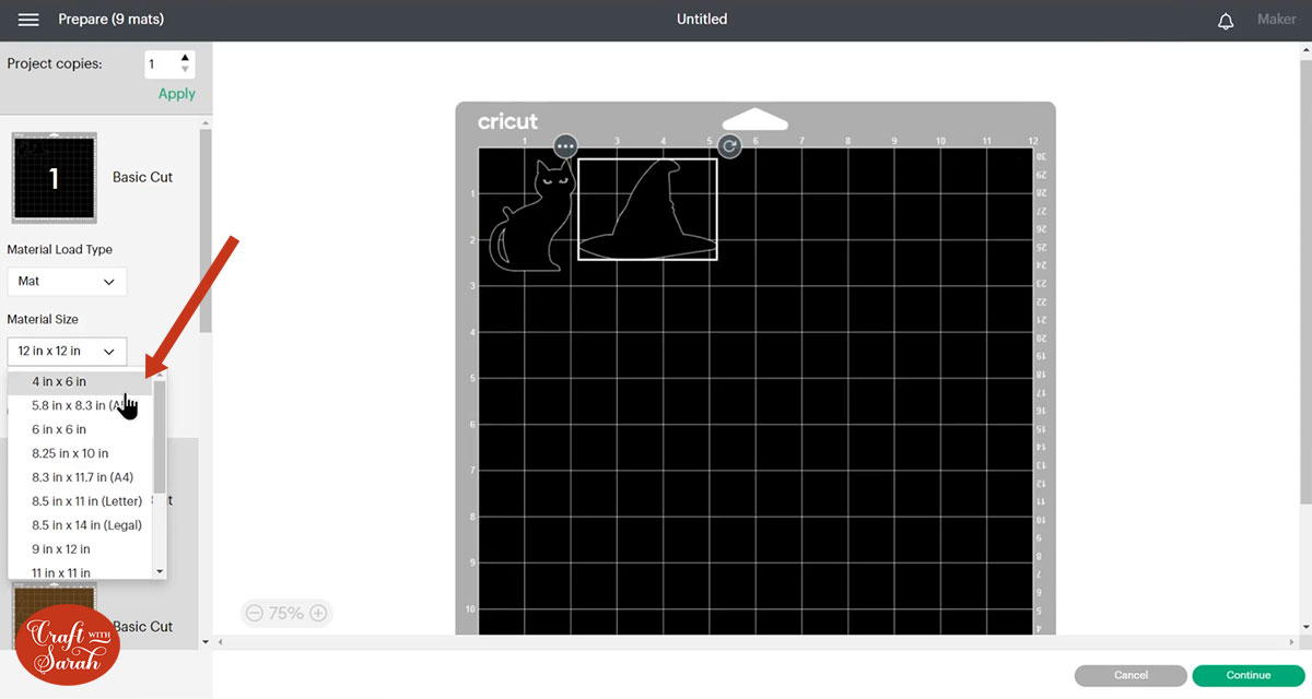 To change the paper size, go into the dropdowns over on the left side of the screen and choose the paper size that you want to use. You need to change it for every single colour.