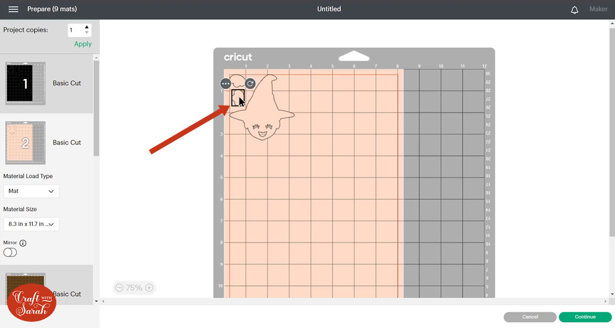 To save space on your cardstock, you can move things around by clicking and dragging. Make sure when you’re moving things about that nothing overlaps because otherwise, it won’t cut out properly.