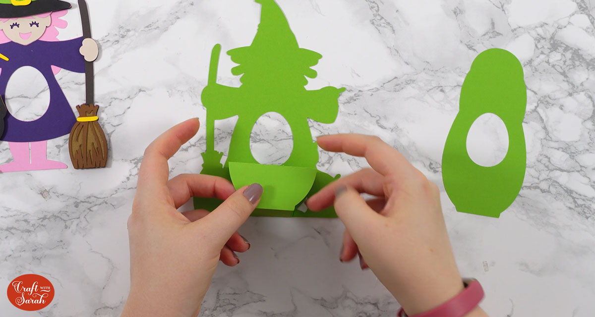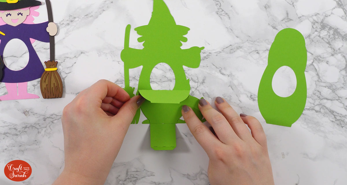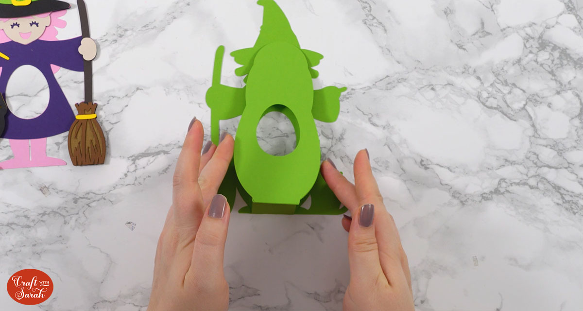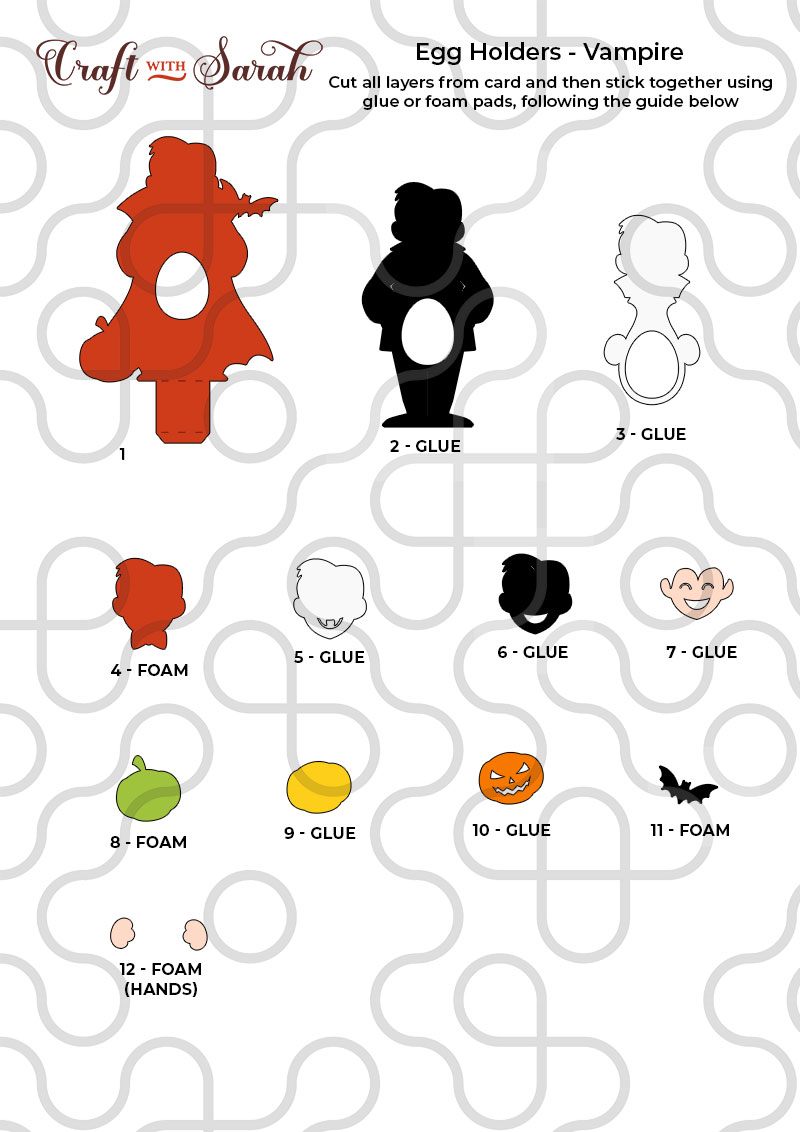 I find it easier to stick the layers of the witch and vampire together before gluing them on to the base of the egg holders.