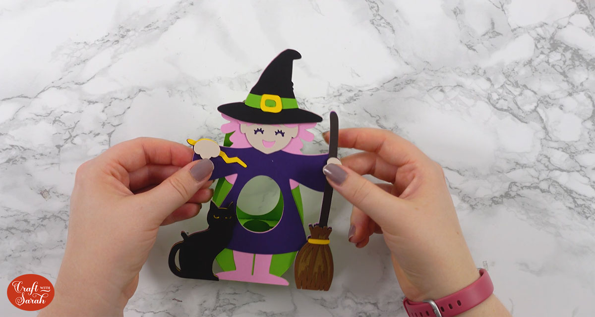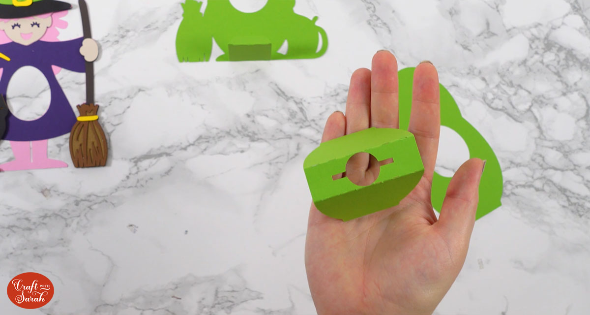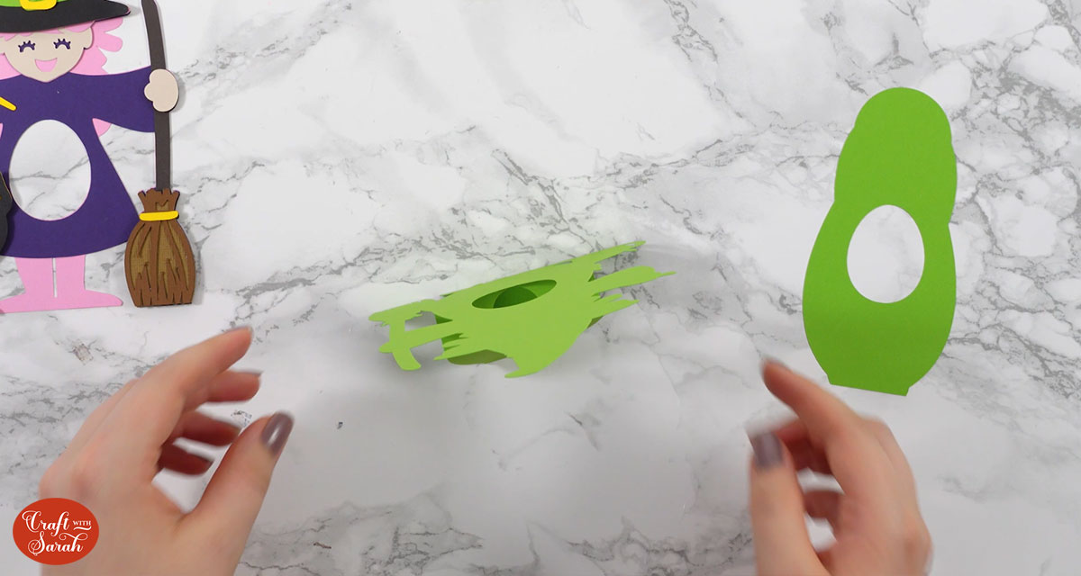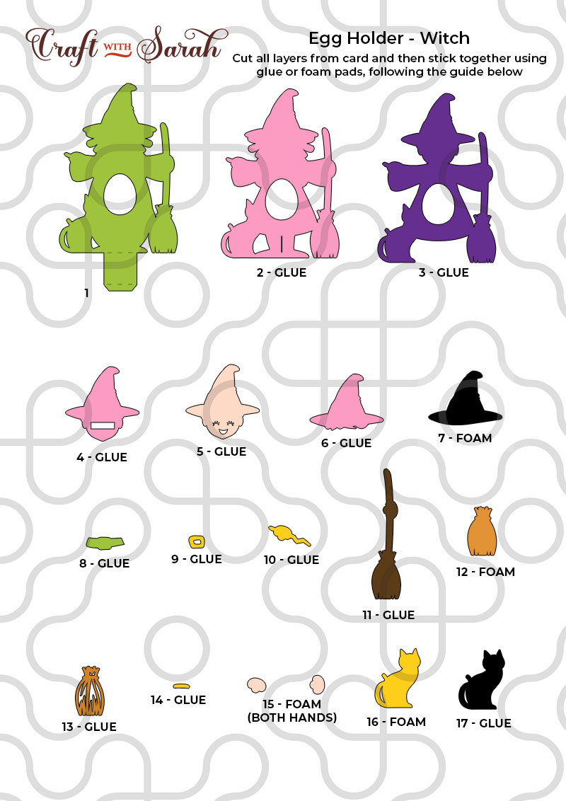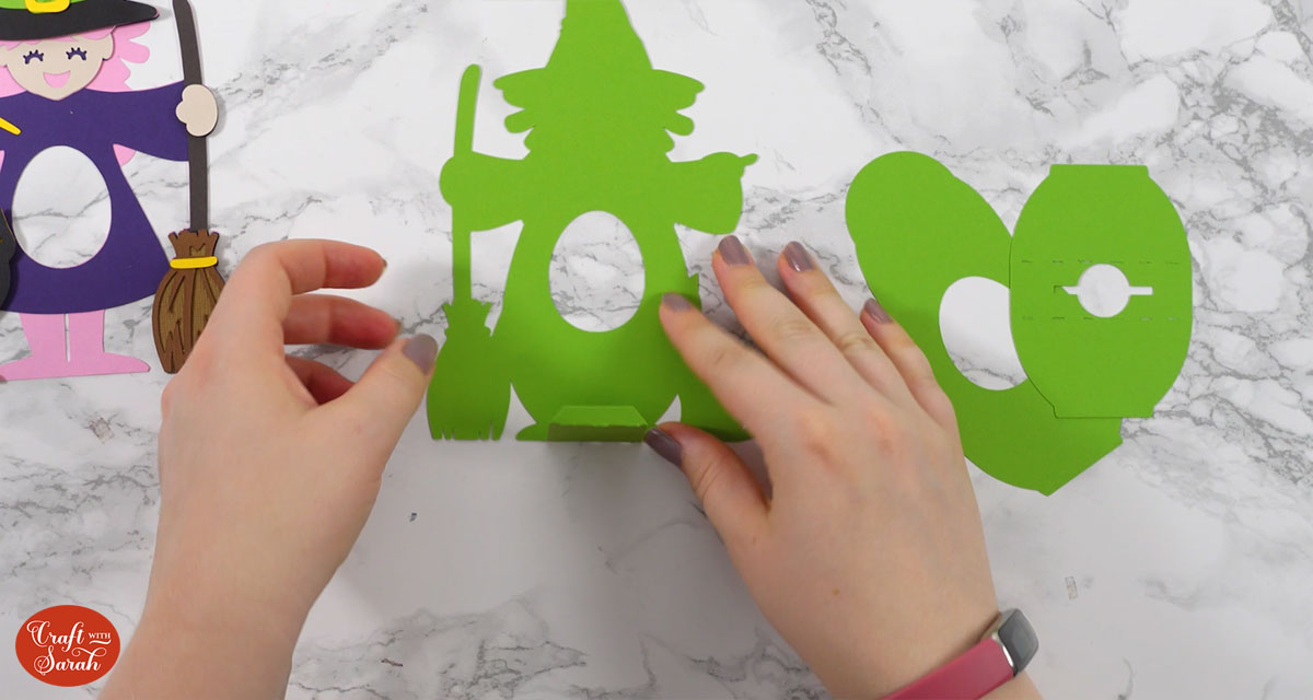 I find it easier to stick the layers of the witch and vampire together before gluing them on to the base of the egg holders.