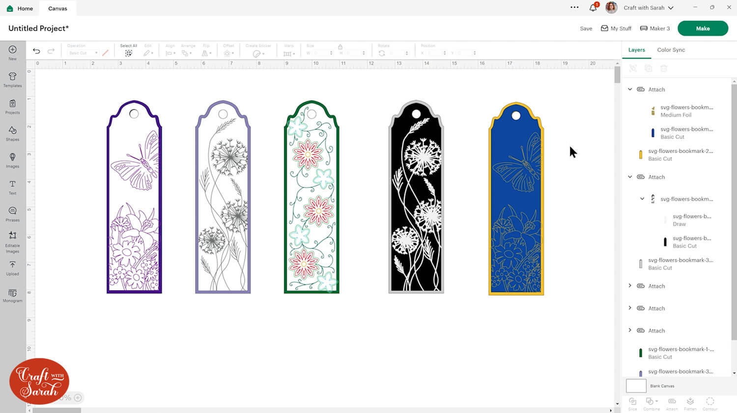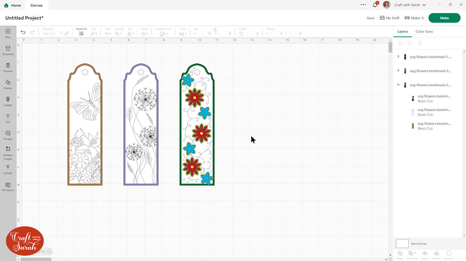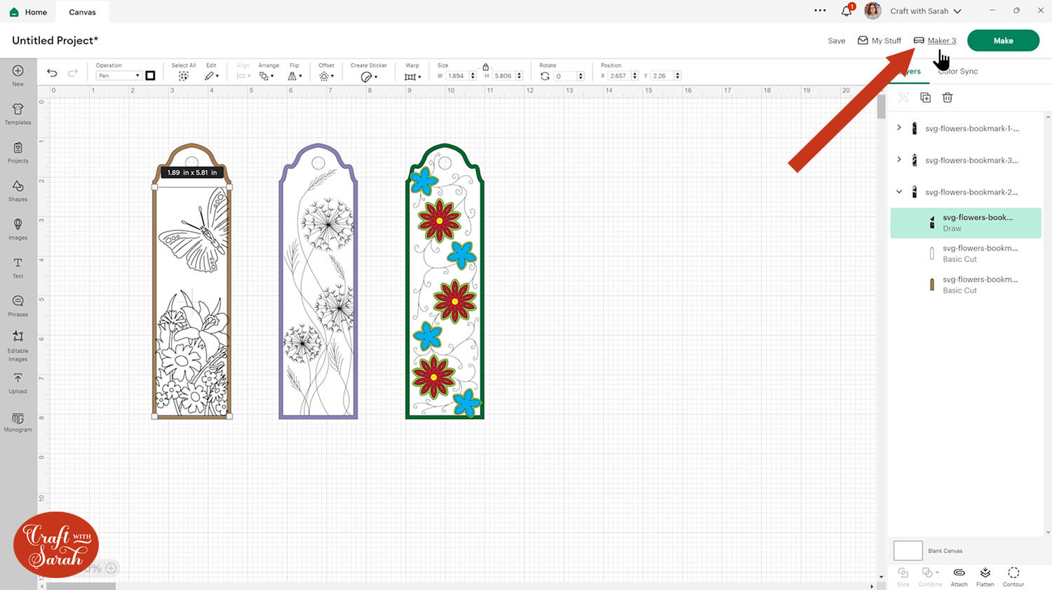 When you’re happy with how your bookmarks are looking, press Make to get everything drawn and cut out.