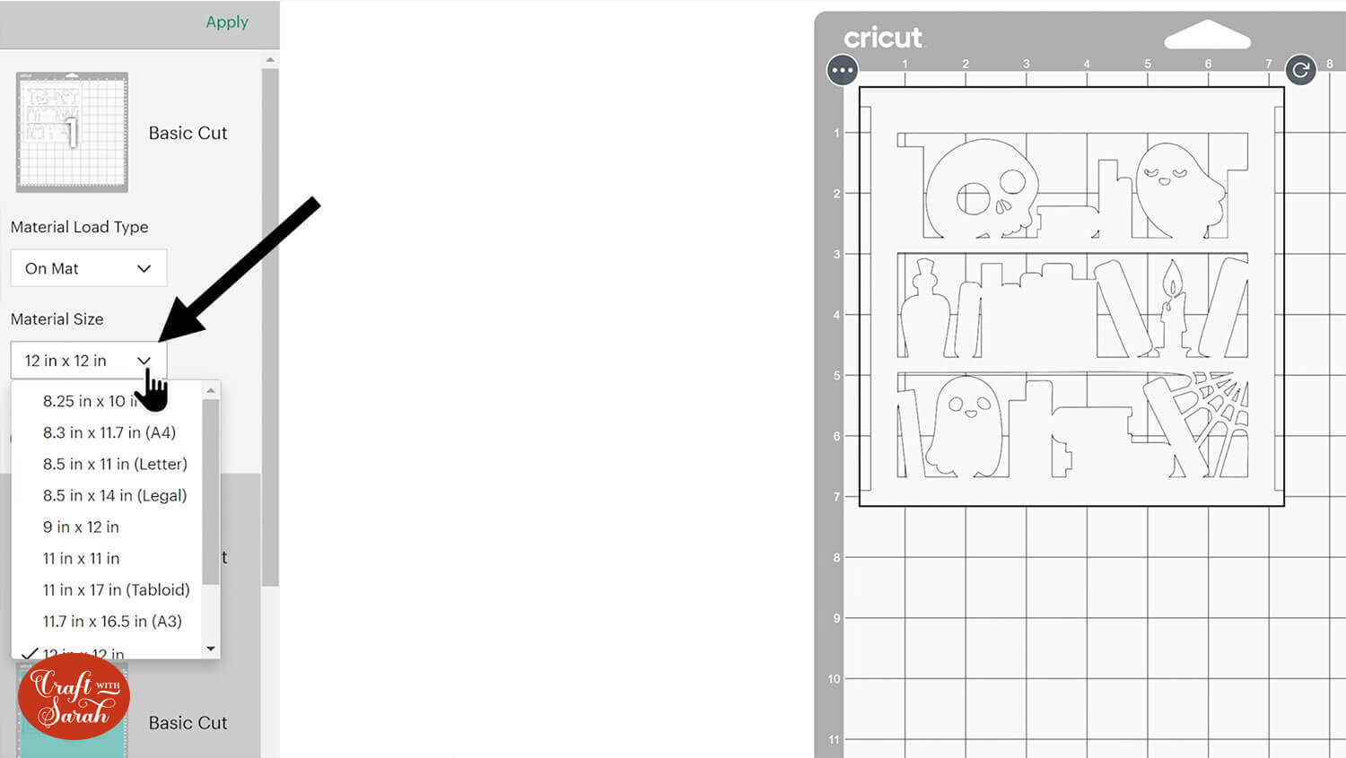 Click the design on your canvas and use the width/height boxes near the top of the screen to make it the size that you want to cut.