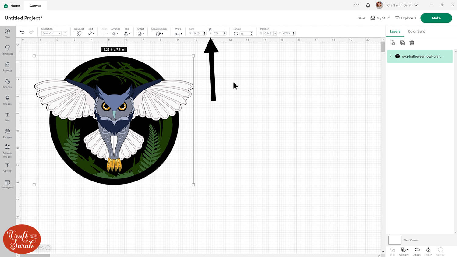 Step 2) Size the owl design