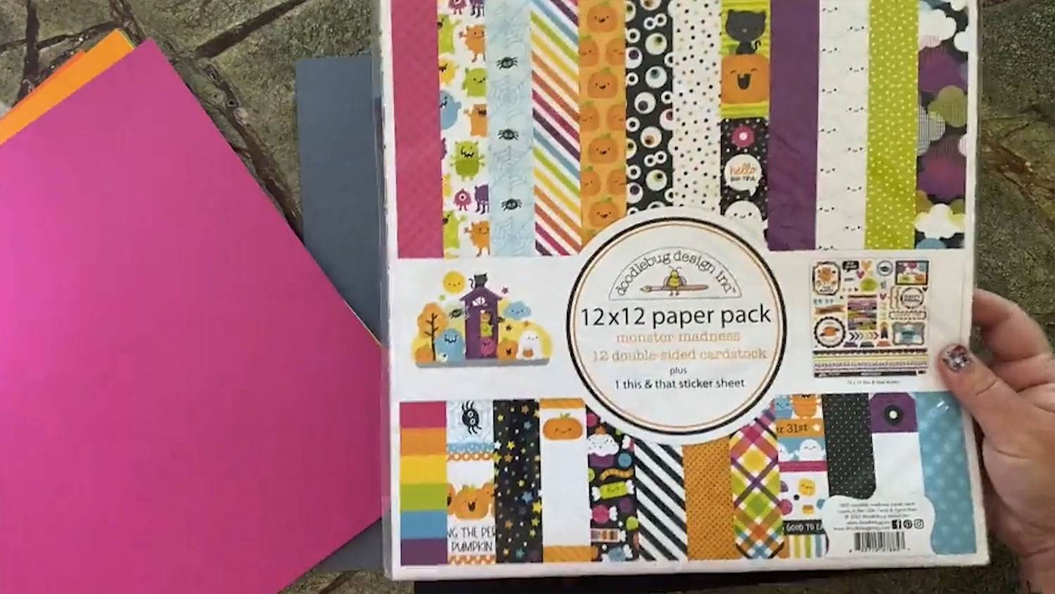 You can get the Doodlebug Monster Madness pack if you would like to follow closely along with Rhoda but you can use any patterned paper that you’d like.