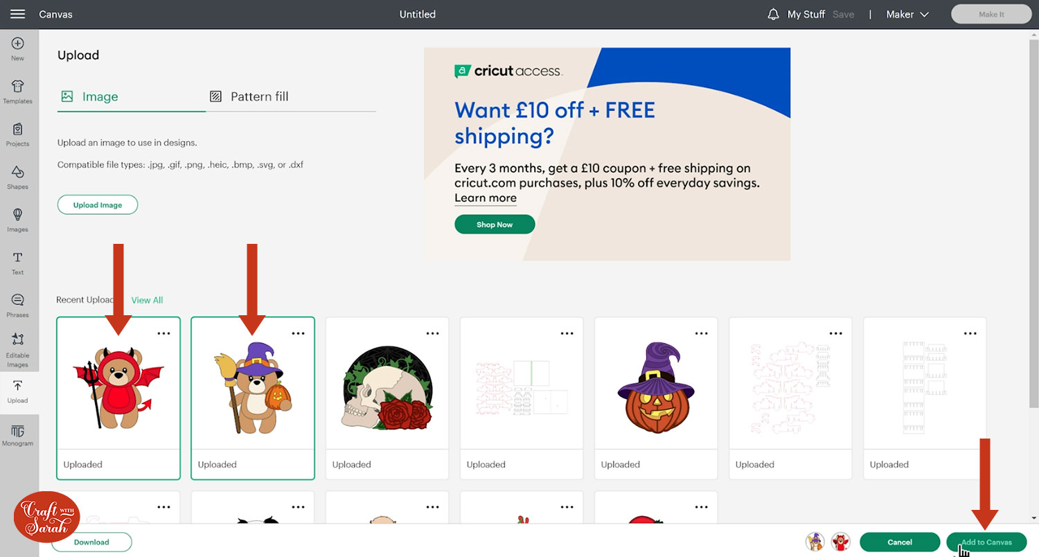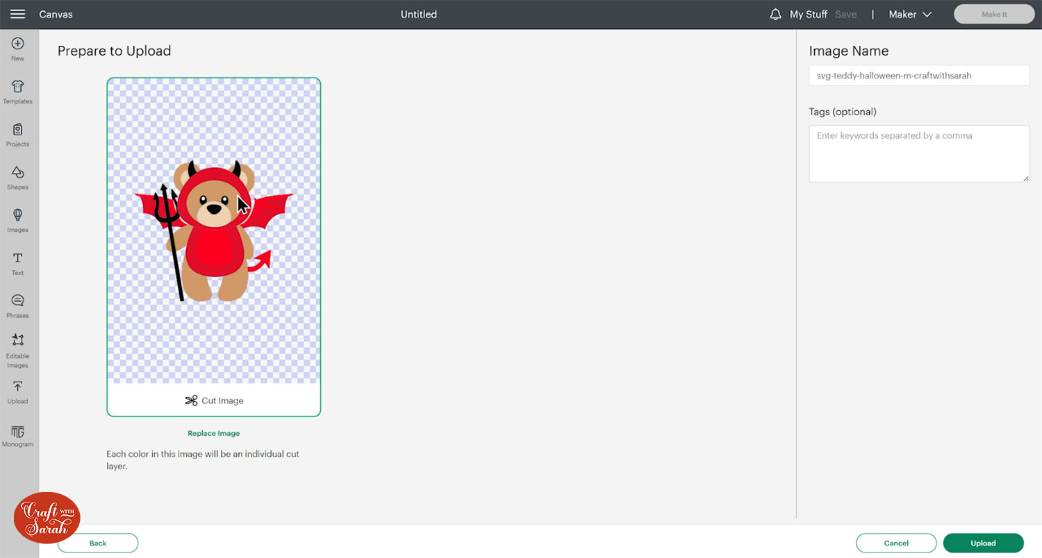 Step 2) Upload the SVG file into Design Space