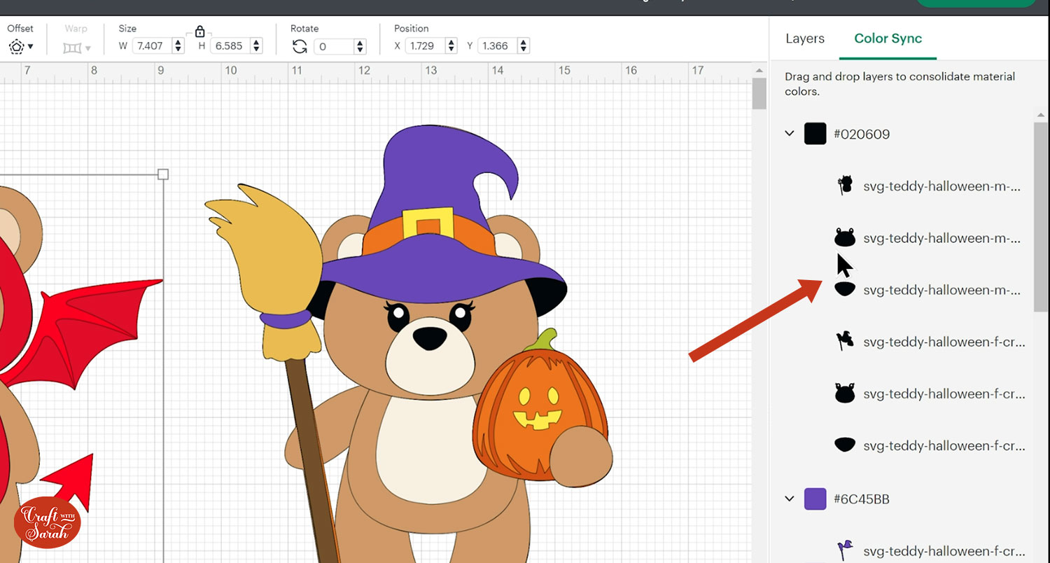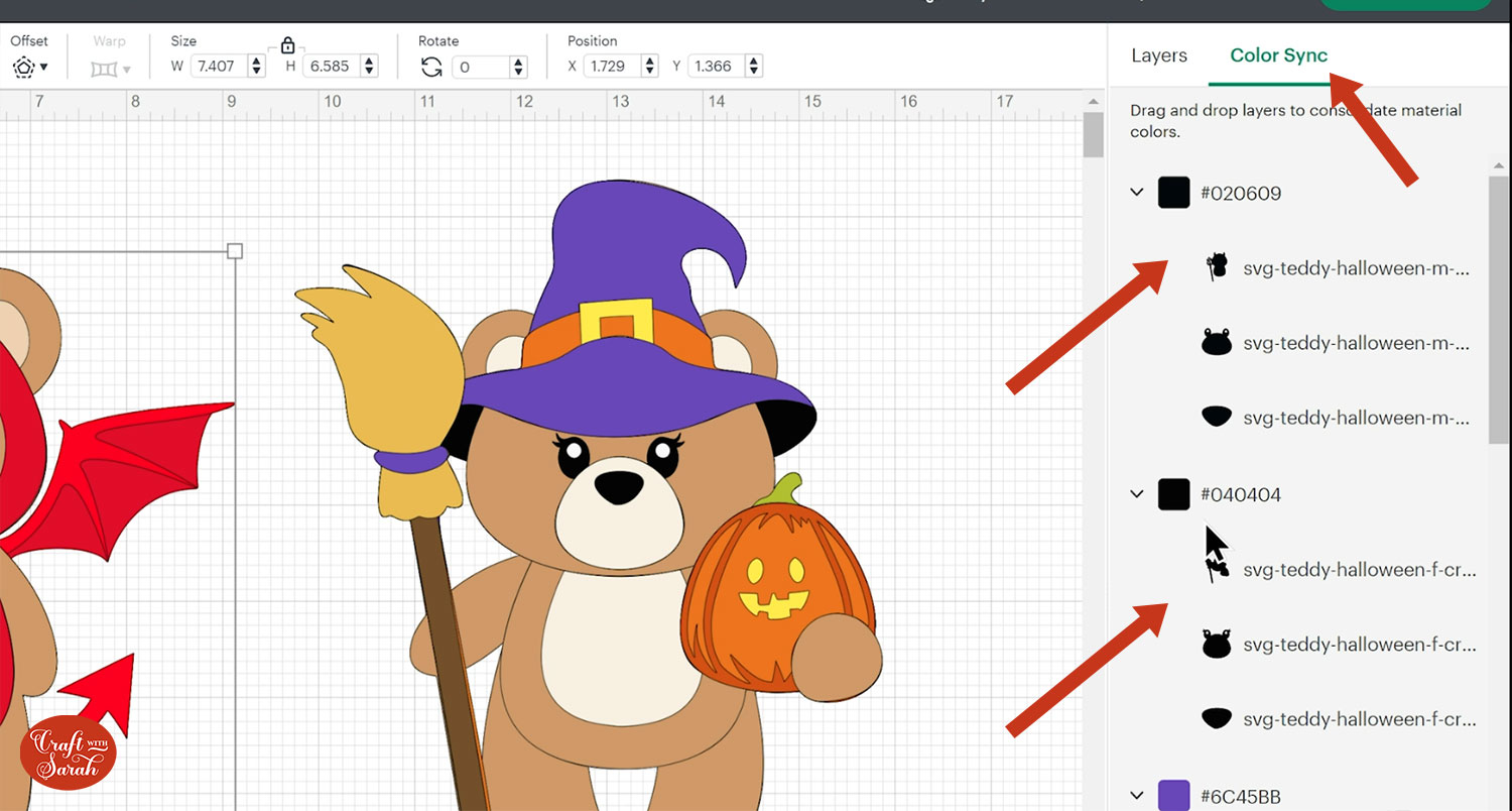 Some of the colours will load in as very similar but not *quite* the same. To make it easier to cut the teddies so that you need less shades of card, use the “Color Sync” tool at the top of the layers panel.