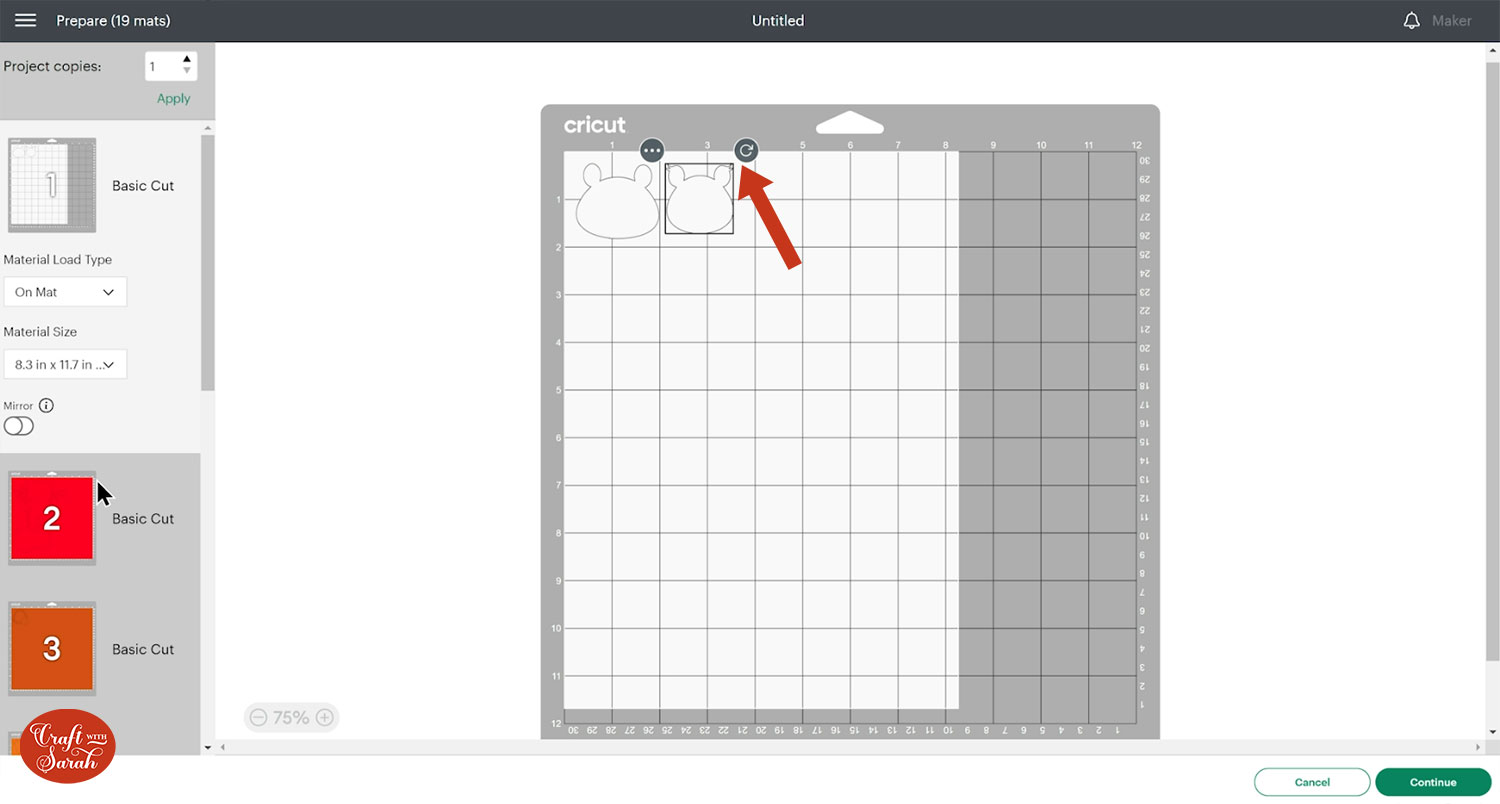 To save space on your cardstock, you can move things around by clicking and dragging. Make sure when you’re moving things about that nothing overlaps because otherwise, it won’t cut out properly