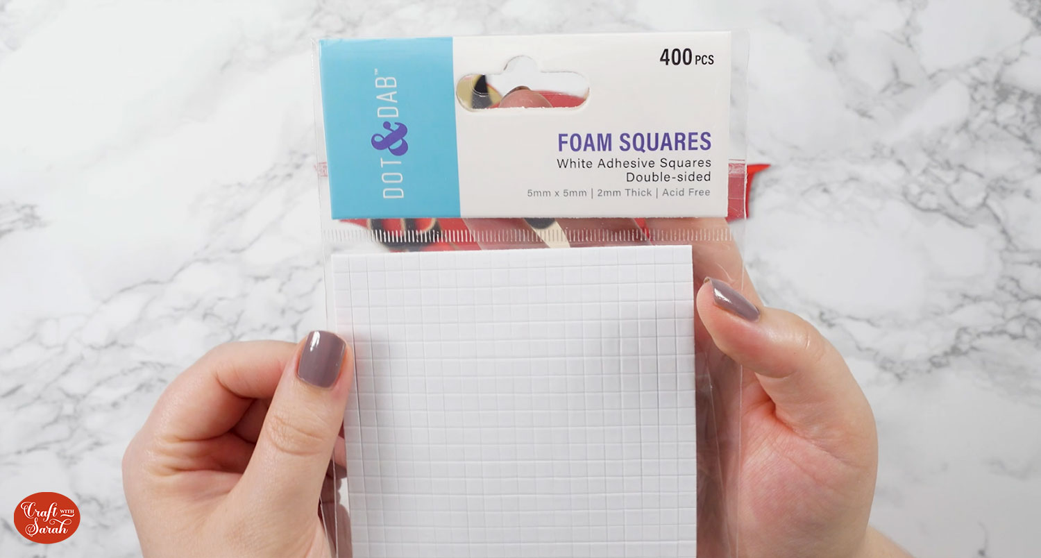 The foam pads that I use are from “Dot & Dab”, but any foam squares will work. If yours are big then you may need to cut them smaller with scissors to fit inside the edges of the layers.