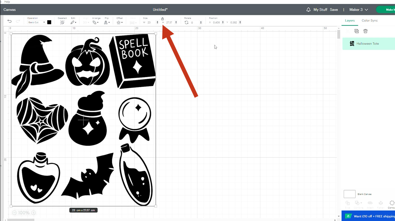 For her specific tote bag, Paulina changed the sizing to 23cm x 27.37cm.