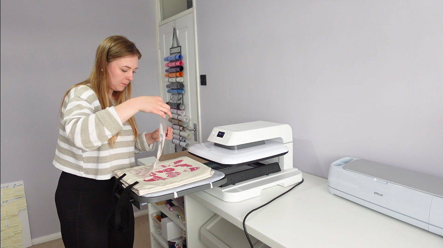 Alternatively, use your iron on top of your tote, design and Teflon sheet and apply pressure.