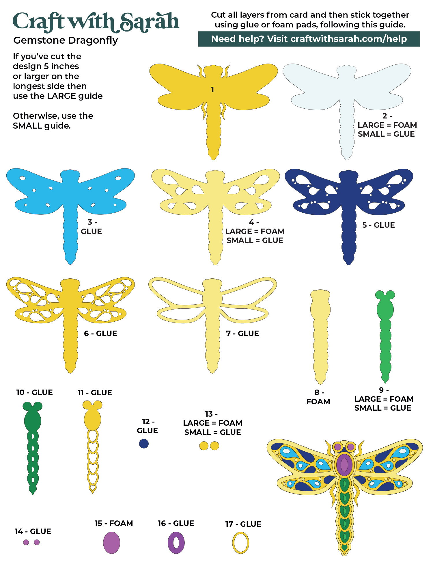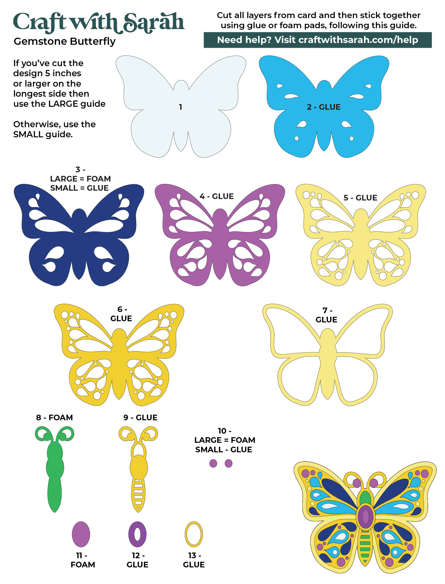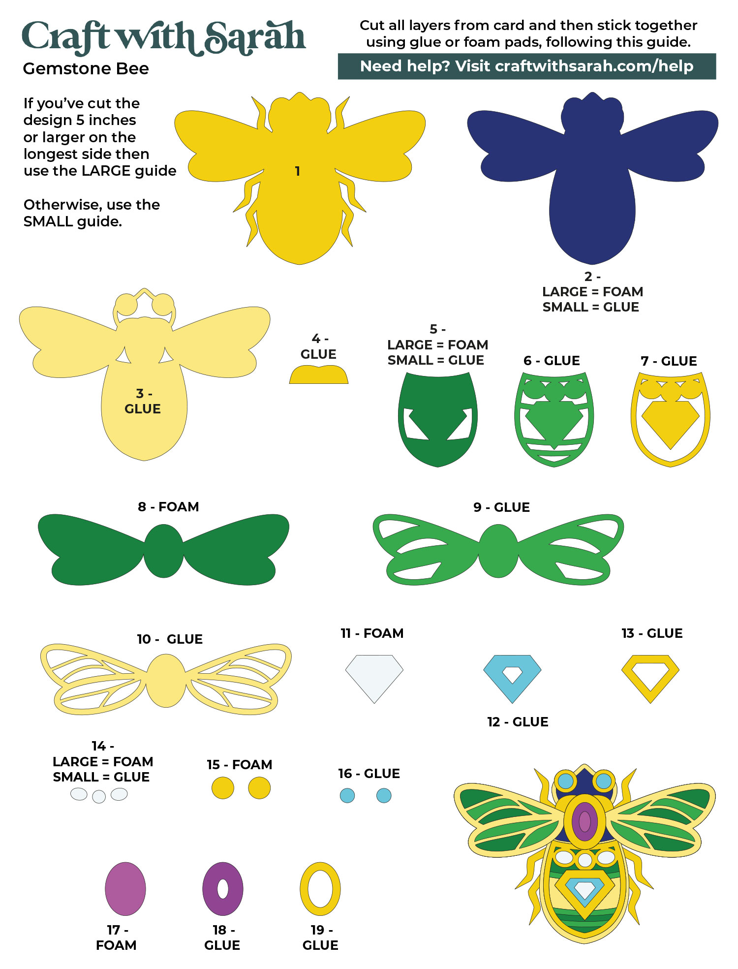 These assembly guides are a bit different to the ones I usually create, as the instructions vary based on the size that you have cut the insects out at.
