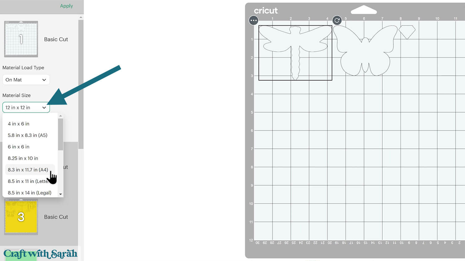 Click the design on your canvas and use the width/height boxes near the top of the screen to make it the size that you want to cut.