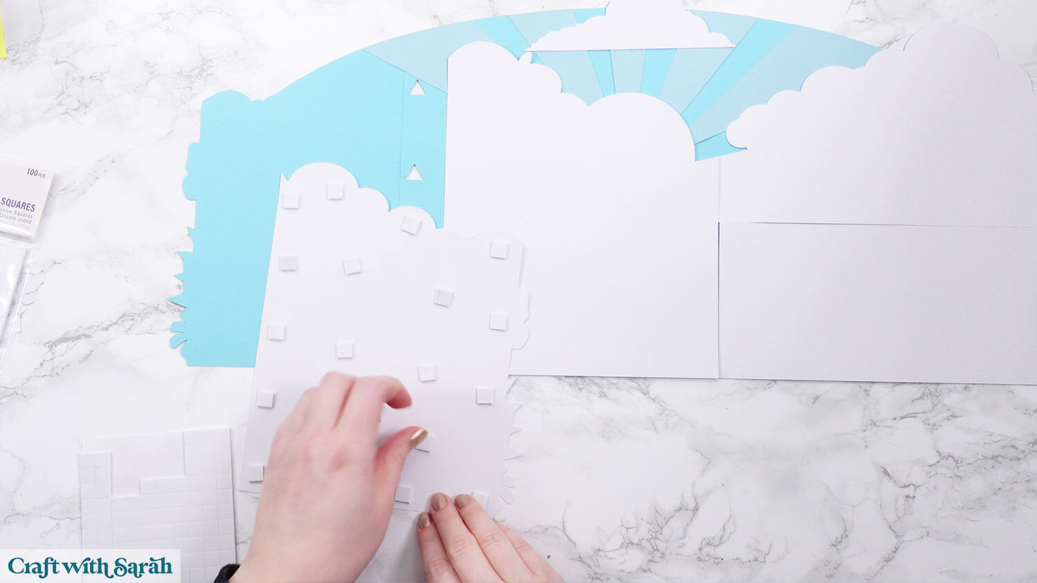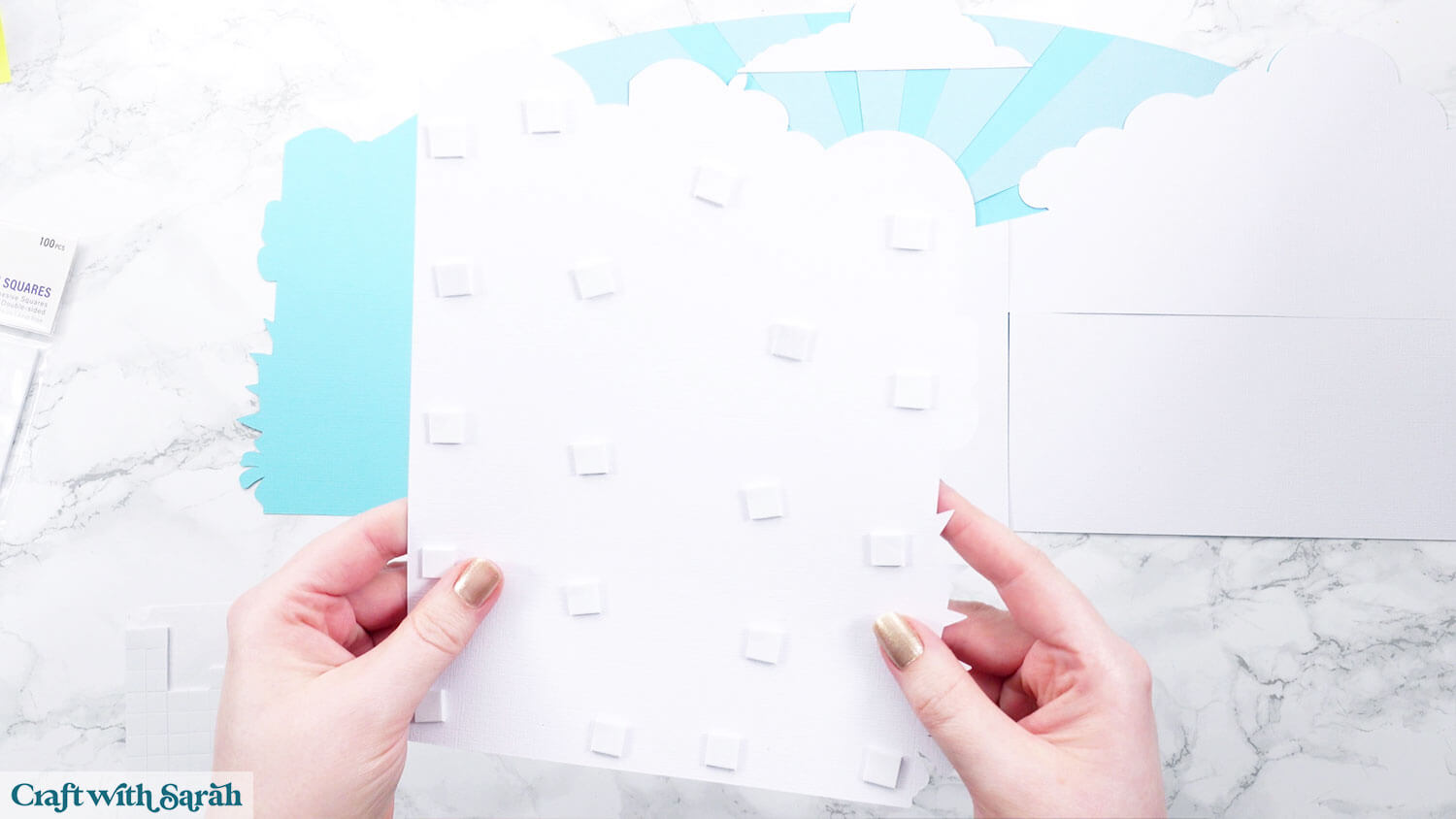 When adding the foam pads to larger pieces of card, make sure you add some in the middles of the pieces of card so it gives stability to the middles.