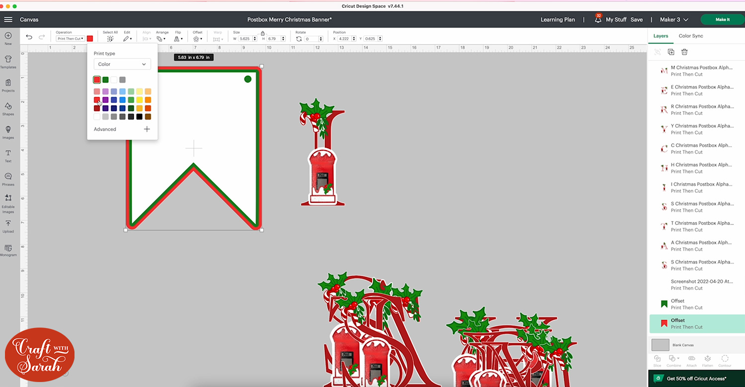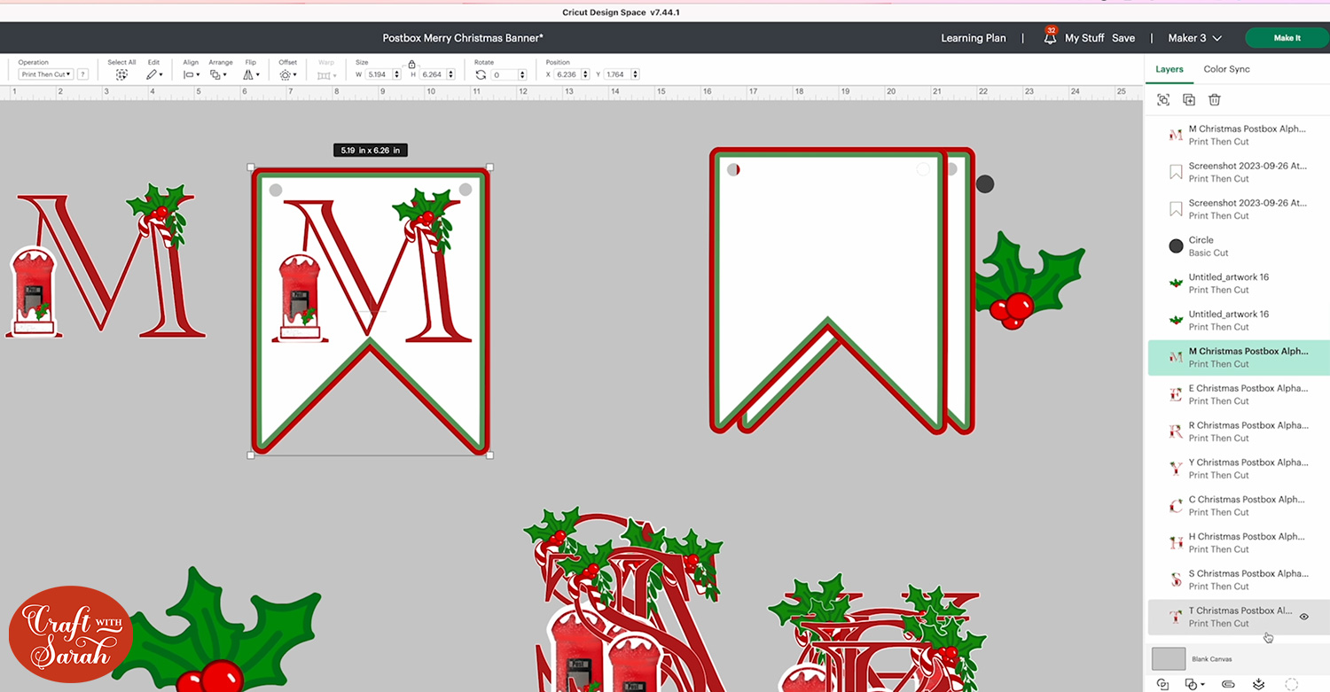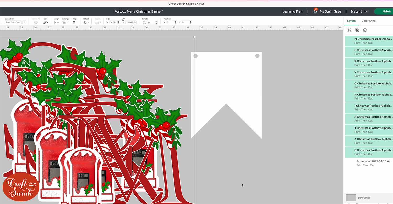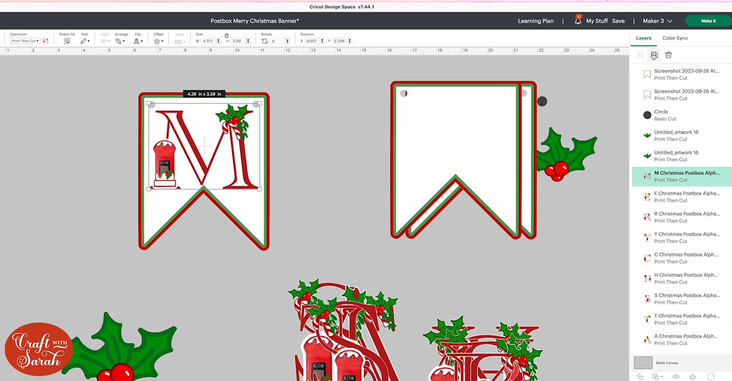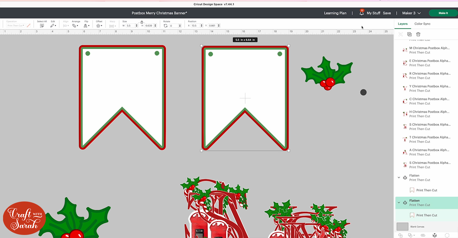 Select all three layers and click Flatten which will turn your banner piece into one flat layer design so that it can be used for Print then Cut.