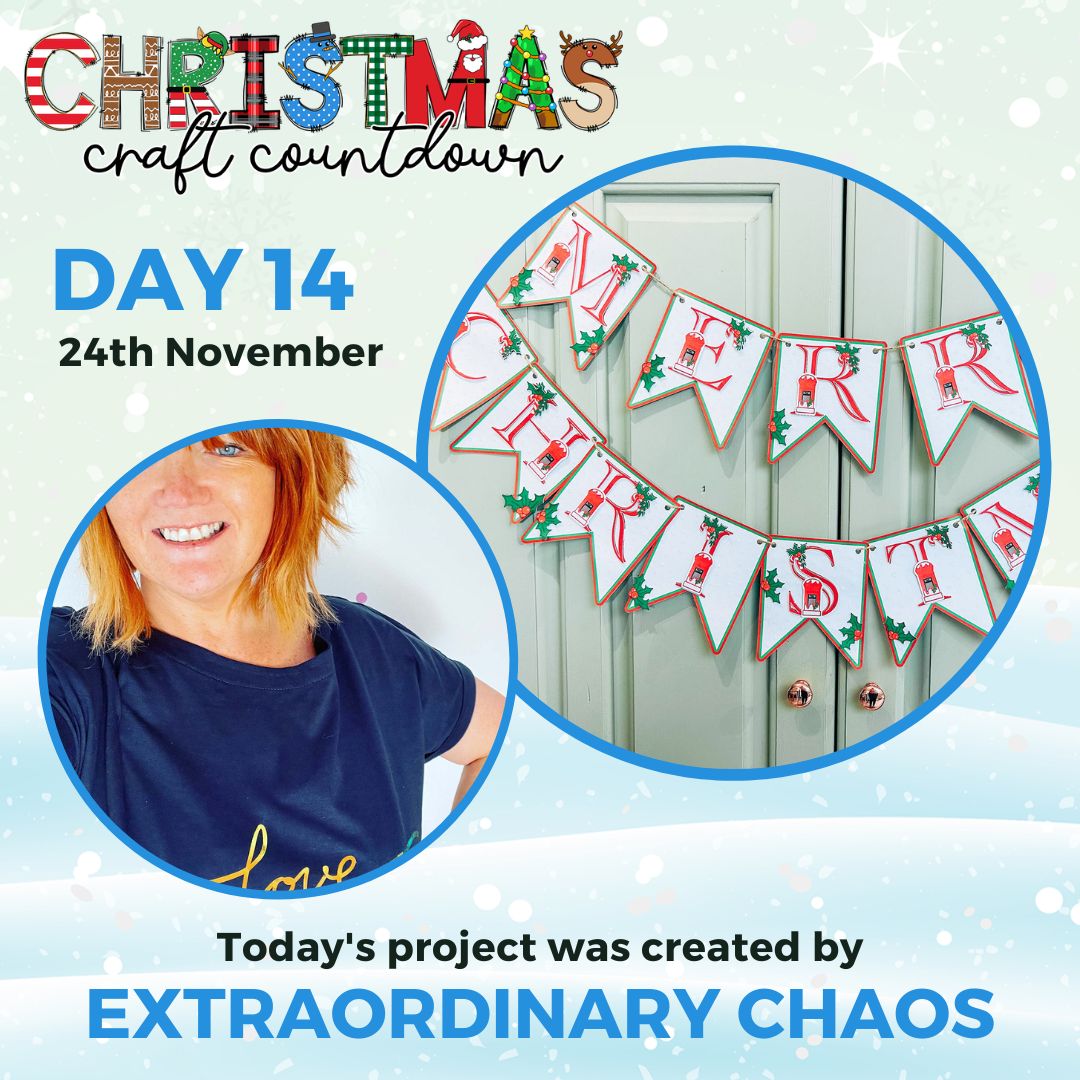 It’s Day 14 of the Christmas Craft Countdown and Sarah Christie from Extraordinary Chaos has made this beautiful Christmas banner with a traditional British postbox design.