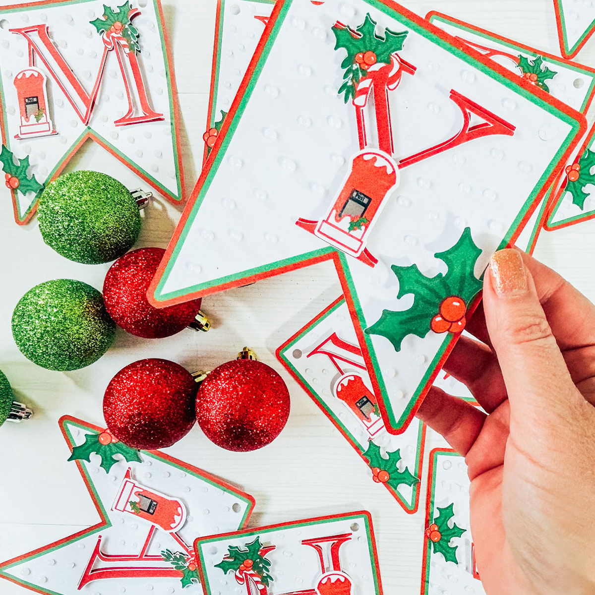 Repeat the process for each of the pennants until you have all of the letters to spell “Merry Christmas”.