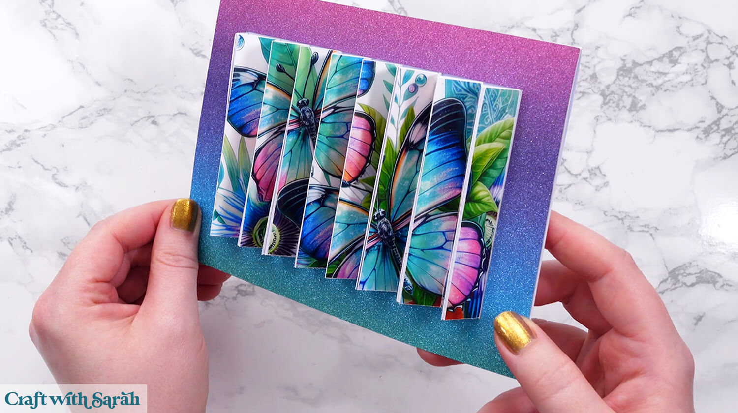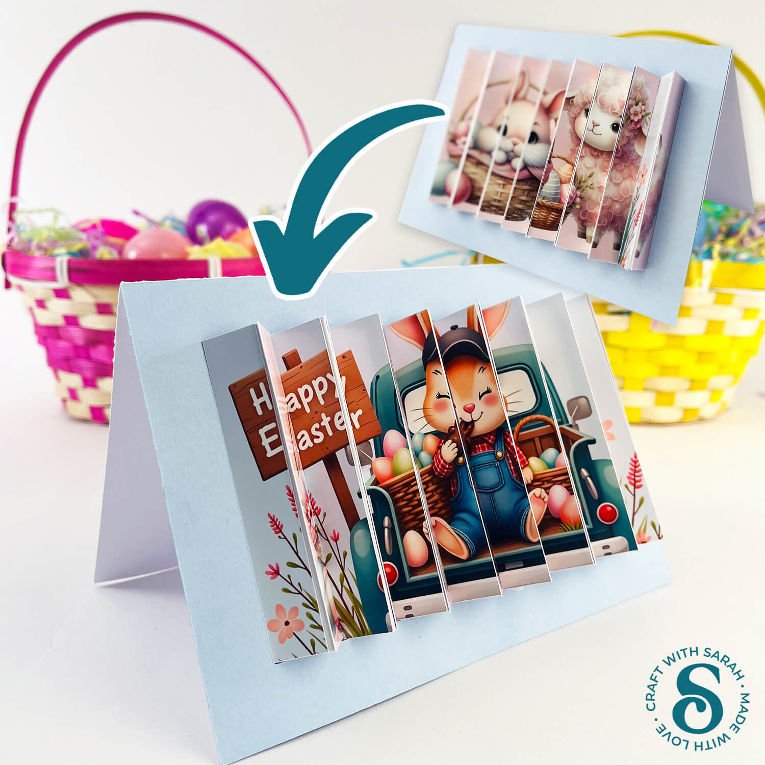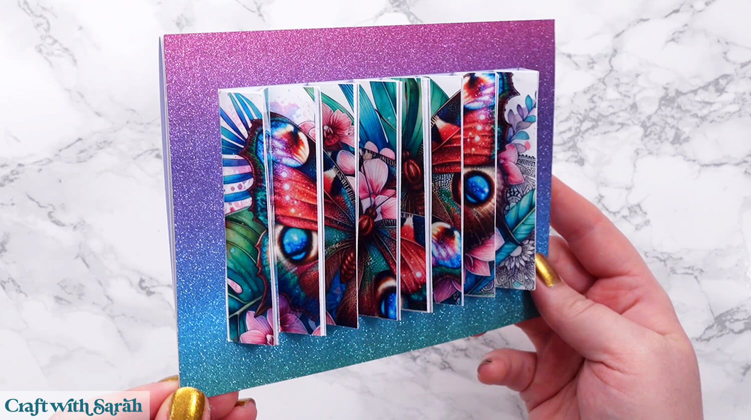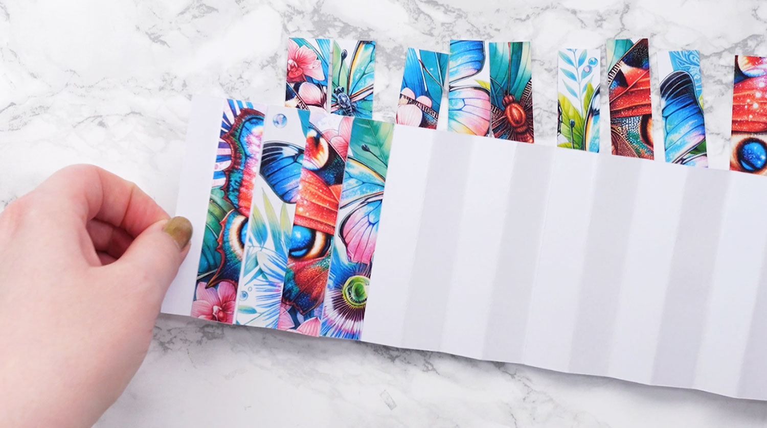 You’ll learn how to cut your chosen images into strips and attach them to a concertina-folded base that brings the effect to life. The result? A mesmerizing, interactive card that’s equal parts art and surprise — and the perfect print then cut project for your cutting machine.