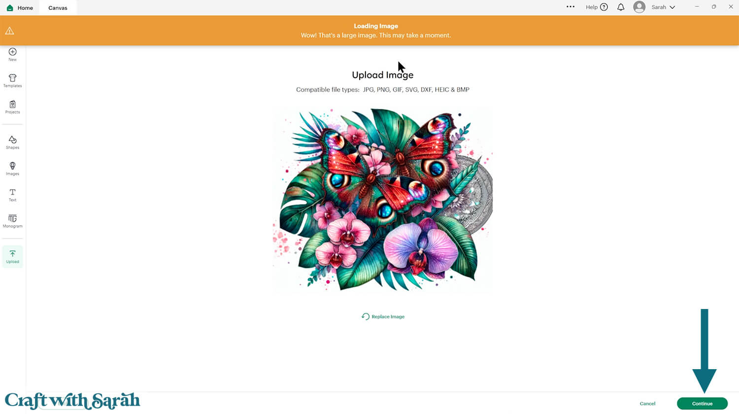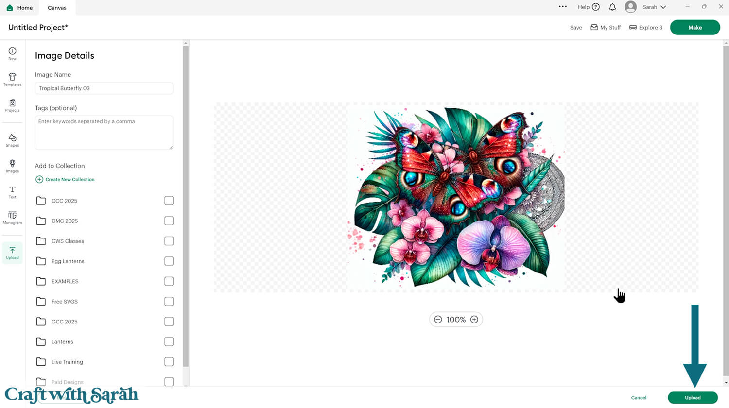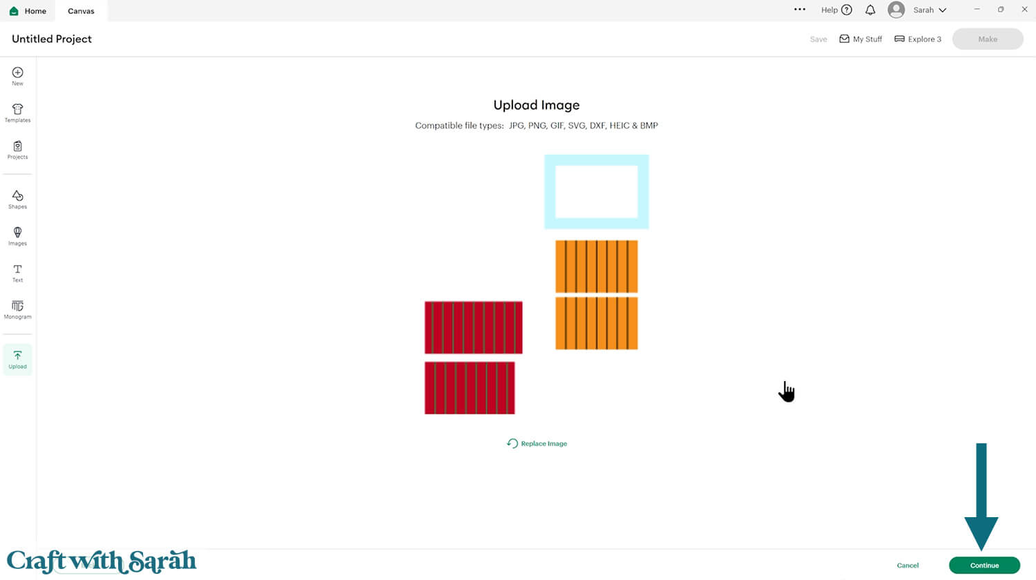 If you are using Cricut Design Space, start a new project and then click the “Upload” button on the left of the screen.