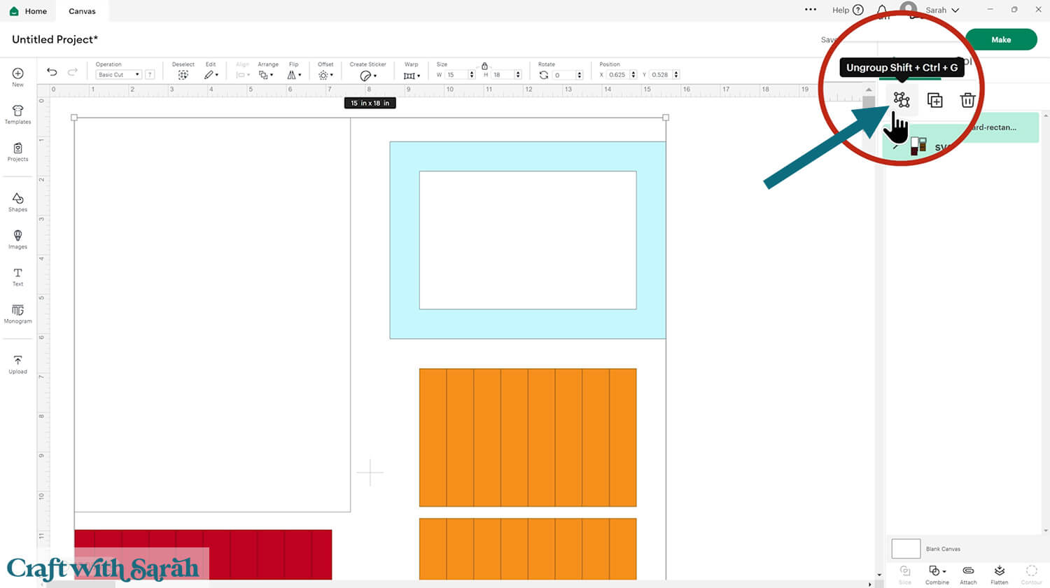 We’re doing this step because it means that the white rectangle will “fill in” any transparent parts that might be present on your graphic, so that the Cricut doesn’t try and cut them out.